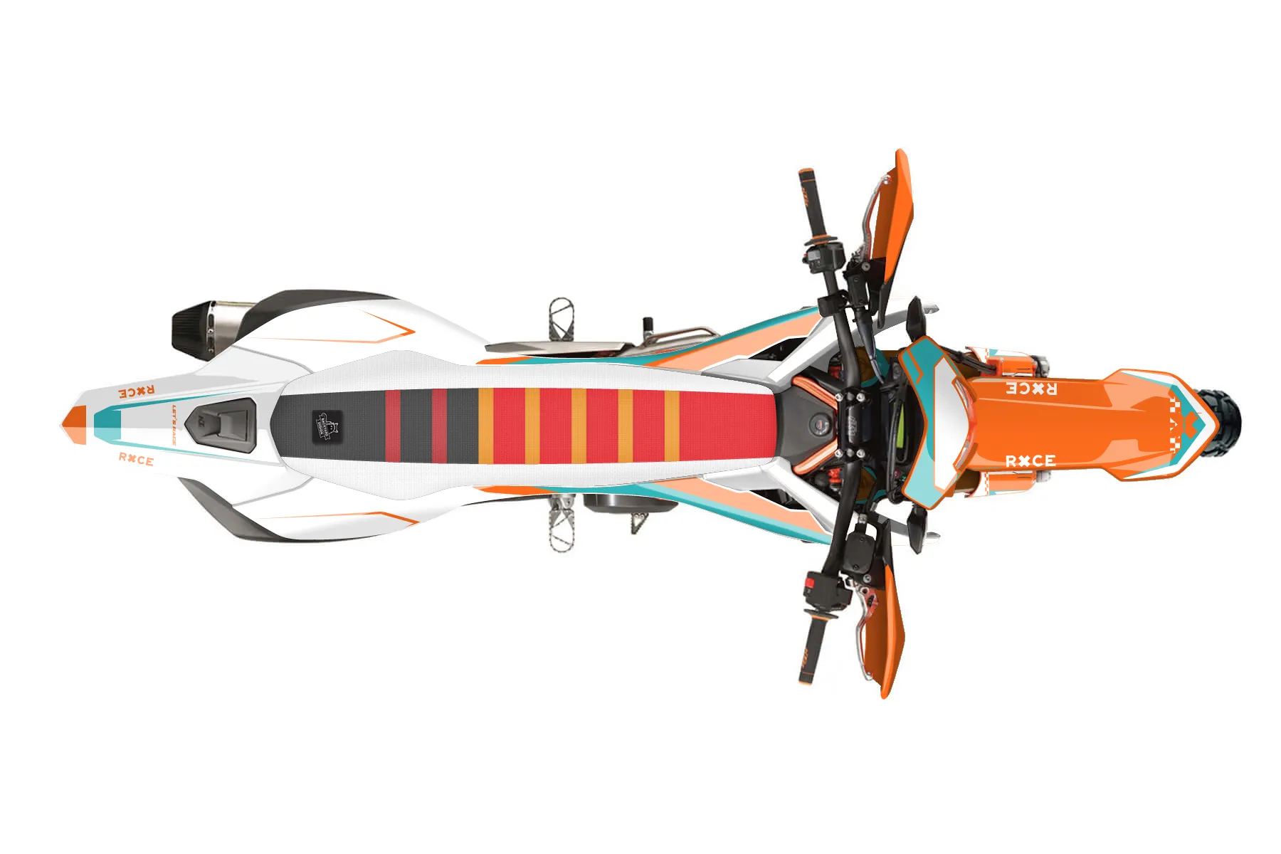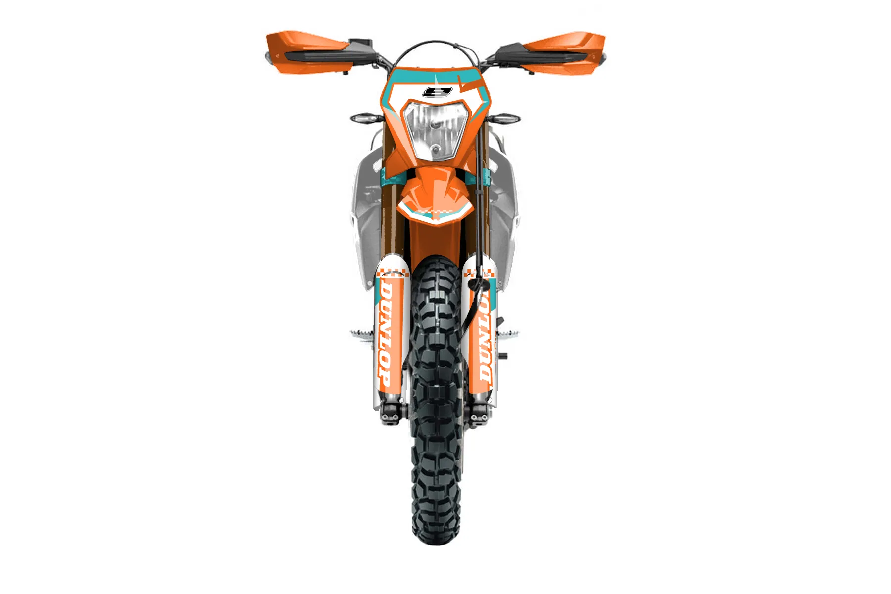 «Swell» — готовый комплект графики серии Staple для KTM Enduro Graphic Kit KTM Enduro-R 690 2019. В комплекте: графика на бак и боковые облицовки, крылья (переднее и заднее), передний щиток, номерные таблички, защита вилки. Материал: ПВХ-винил 80 мкр с холодной ламинацией 300 мкр, общая толщина 380 мкр; покрытие глянцевое или матовое на выбор. Устойчив к UV-излучению, воде, бензину и мойке высокого давления. Клей акриловый на сольвентной основе — постоянный, для гибких пластиков. На простых поверхностях монтируется без нагрева; для сложных изгибов рекомендуем фен. Этот пресет можно заказать как есть или взять за основу в конструкторе: поменять цвета, добавить стартовый номер и свой бренд. Производство — 3–5 рабочих дней, доставка по России СДЭКом или Почтой, по СНГ — курьерскими службами.