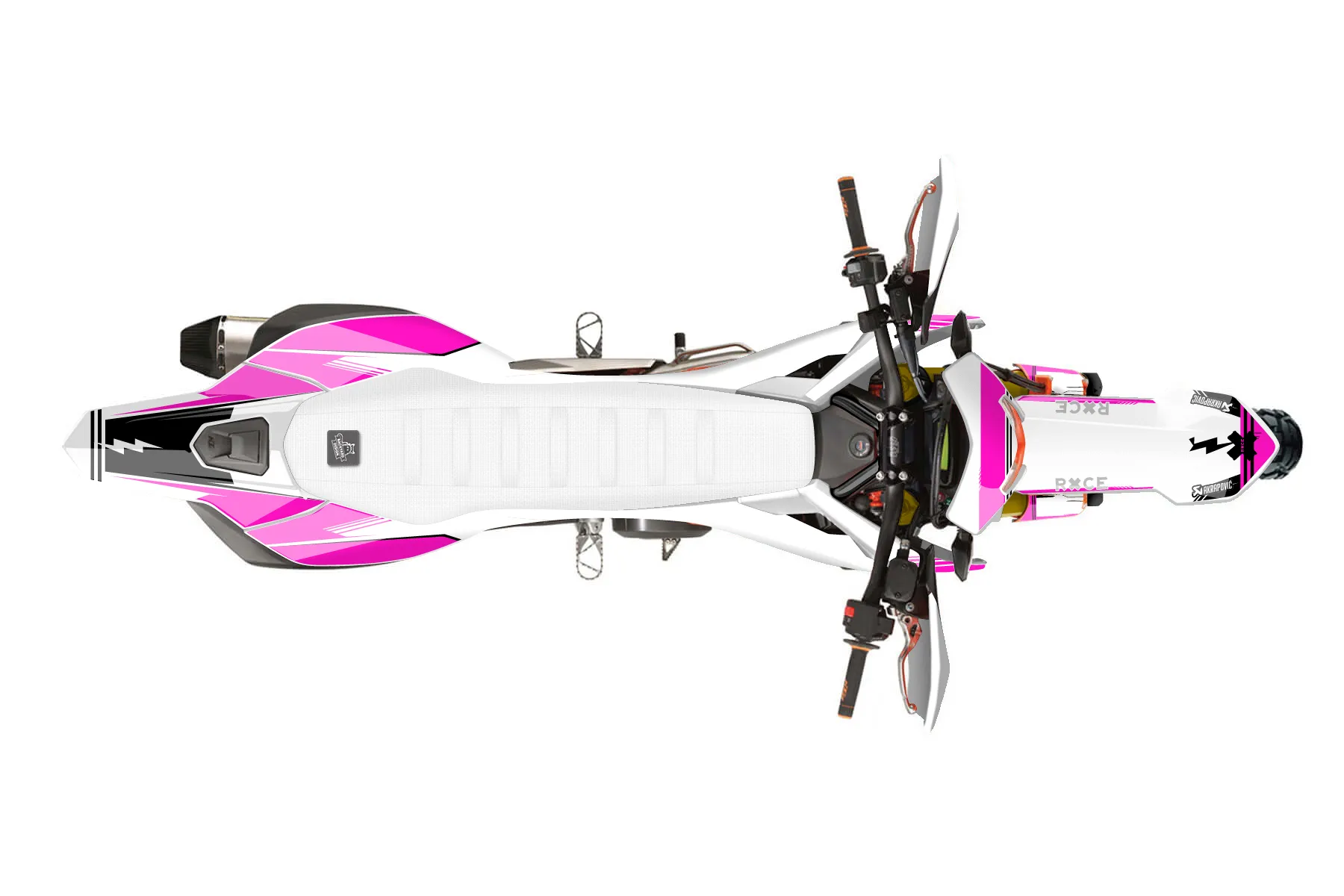 «Pure» — готовый комплект графики серии Untucked для KTM Enduro Graphic Kit KTM Enduro-R 690 2019. В комплекте: графика на бак и боковые облицовки, крылья (переднее и заднее), передний щиток, номерные таблички, защита вилки. Материал: ПВХ-винил 80 мкр с холодной ламинацией 300 мкр, общая толщина 380 мкр; покрытие глянцевое или матовое на выбор. Устойчив к UV-излучению, воде, бензину и мойке высокого давления. Клей акриловый на сольвентной основе — постоянный, для гибких пластиков. На простых поверхностях монтируется без нагрева; для сложных изгибов рекомендуем фен. Этот пресет можно заказать как есть или взять за основу в конструкторе: поменять цвета, добавить стартовый номер и свой бренд. Производство — 3–5 рабочих дней, доставка по России СДЭКом или Почтой, по СНГ — курьерскими службами.