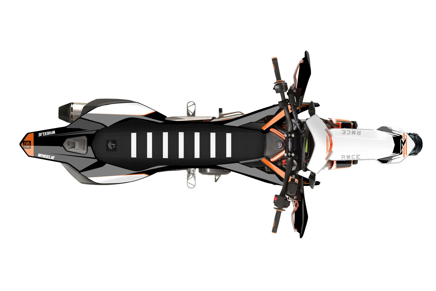 «Stable» — готовый комплект графики серии Untucked для KTM Enduro Graphic Kit KTM Enduro-R 690 2019. В комплекте: графика на бак и боковые облицовки, крылья (переднее и заднее), передний щиток, номерные таблички, защита вилки. Материал: ПВХ-винил 80 мкр с холодной ламинацией 300 мкр, общая толщина 380 мкр; покрытие глянцевое или матовое на выбор. Устойчив к UV-излучению, воде, бензину и мойке высокого давления. Клей акриловый на сольвентной основе — постоянный, для гибких пластиков. На простых поверхностях монтируется без нагрева; для сложных изгибов рекомендуем фен. Этот пресет можно заказать как есть или взять за основу в конструкторе: поменять цвета, добавить стартовый номер и свой бренд. Производство — 3–5 рабочих дней, доставка по России СДЭКом или Почтой, по СНГ — курьерскими службами.