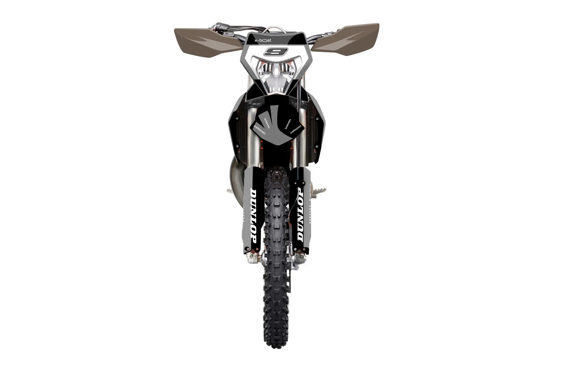«Vector» — готовый комплект графики серии Flow для KTM Enduro Graphic Kit KTM EXC 125 2003. В комплекте: графика на бак и боковые облицовки, крылья (переднее и заднее), передний щиток, номерные таблички, защита вилки. Материал: ПВХ-винил 80 мкр с холодной ламинацией 300 мкр, общая толщина 380 мкр; покрытие глянцевое или матовое на выбор. Устойчив к UV-излучению, воде, бензину и мойке высокого давления. Клей акриловый на сольвентной основе — постоянный, для гибких пластиков. На простых поверхностях монтируется без нагрева; для сложных изгибов рекомендуем фен. Этот пресет можно заказать как есть или взять за основу в конструкторе: поменять цвета, добавить стартовый номер и свой бренд. Производство — 3–5 рабочих дней, доставка по России СДЭКом или Почтой, по СНГ — курьерскими службами.