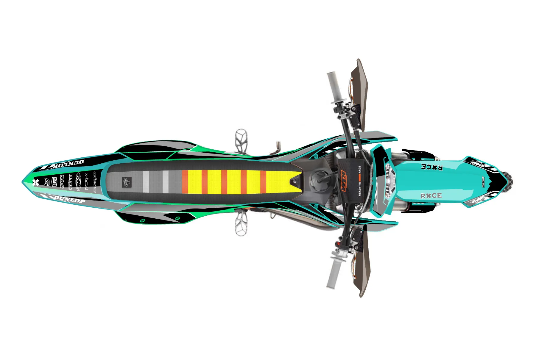 «Refuse» — готовый комплект графики серии Maverick для KTM Enduro Graphic Kit KTM EXC 125 2005. В комплекте: графика на бак и боковые облицовки, крылья (переднее и заднее), передний щиток, номерные таблички, защита вилки. Материал: ПВХ-винил 80 мкр с холодной ламинацией 300 мкр, общая толщина 380 мкр; покрытие глянцевое или матовое на выбор. Устойчив к UV-излучению, воде, бензину и мойке высокого давления. Клей акриловый на сольвентной основе — постоянный, для гибких пластиков. На простых поверхностях монтируется без нагрева; для сложных изгибов рекомендуем фен. Этот пресет можно заказать как есть или взять за основу в конструкторе: поменять цвета, добавить стартовый номер и свой бренд. Производство — 3–5 рабочих дней, доставка по России СДЭКом или Почтой, по СНГ — курьерскими службами.