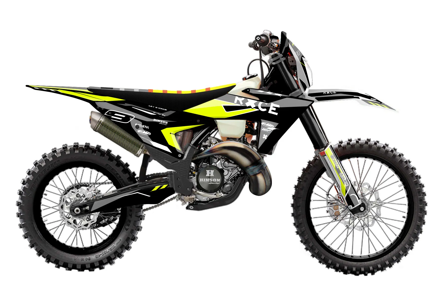«Daze Fluo» — готовый комплект графики серии Maverick для KTM Enduro Graphic Kit KTM EXC 125 2014. В комплекте: графика на бак и боковые облицовки, крылья (переднее и заднее), передний щиток, номерные таблички, защита вилки. Материал: ПВХ-винил 80 мкр с холодной ламинацией 300 мкр, общая толщина 380 мкр; покрытие глянцевое или матовое на выбор. Устойчив к UV-излучению, воде, бензину и мойке высокого давления. Клей акриловый на сольвентной основе — постоянный, для гибких пластиков. На простых поверхностях монтируется без нагрева; для сложных изгибов рекомендуем фен. Этот пресет можно заказать как есть или взять за основу в конструкторе: поменять цвета, добавить стартовый номер и свой бренд. Производство — 3–5 рабочих дней, доставка по России СДЭКом или Почтой, по СНГ — курьерскими службами.