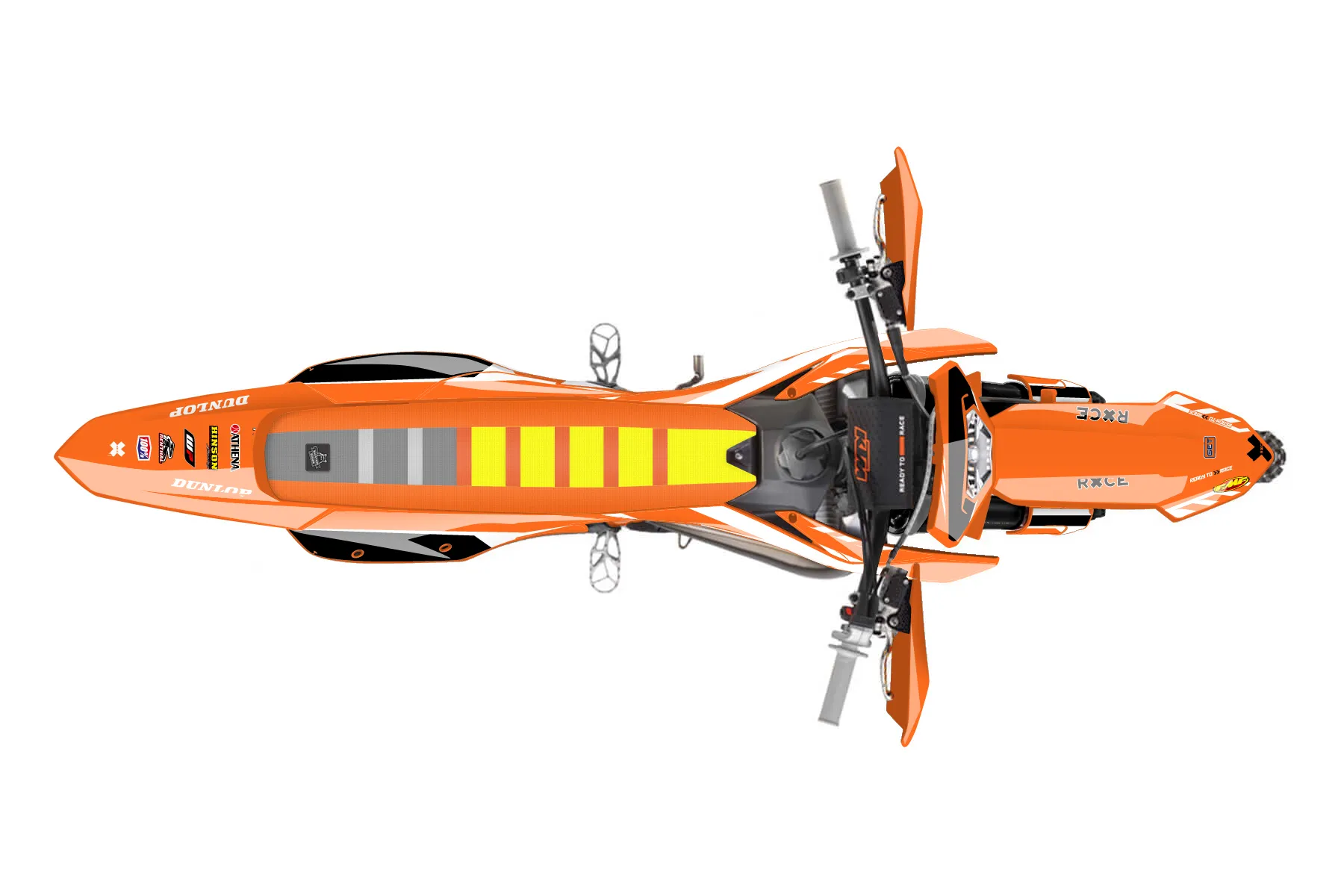 «Train» — готовый комплект графики серии Maverick для KTM Enduro Graphic Kit KTM EXC 125 2014. В комплекте: графика на бак и боковые облицовки, крылья (переднее и заднее), передний щиток, номерные таблички, защита вилки. Материал: ПВХ-винил 80 мкр с холодной ламинацией 300 мкр, общая толщина 380 мкр; покрытие глянцевое или матовое на выбор. Устойчив к UV-излучению, воде, бензину и мойке высокого давления. Клей акриловый на сольвентной основе — постоянный, для гибких пластиков. На простых поверхностях монтируется без нагрева; для сложных изгибов рекомендуем фен. Этот пресет можно заказать как есть или взять за основу в конструкторе: поменять цвета, добавить стартовый номер и свой бренд. Производство — 3–5 рабочих дней, доставка по России СДЭКом или Почтой, по СНГ — курьерскими службами.