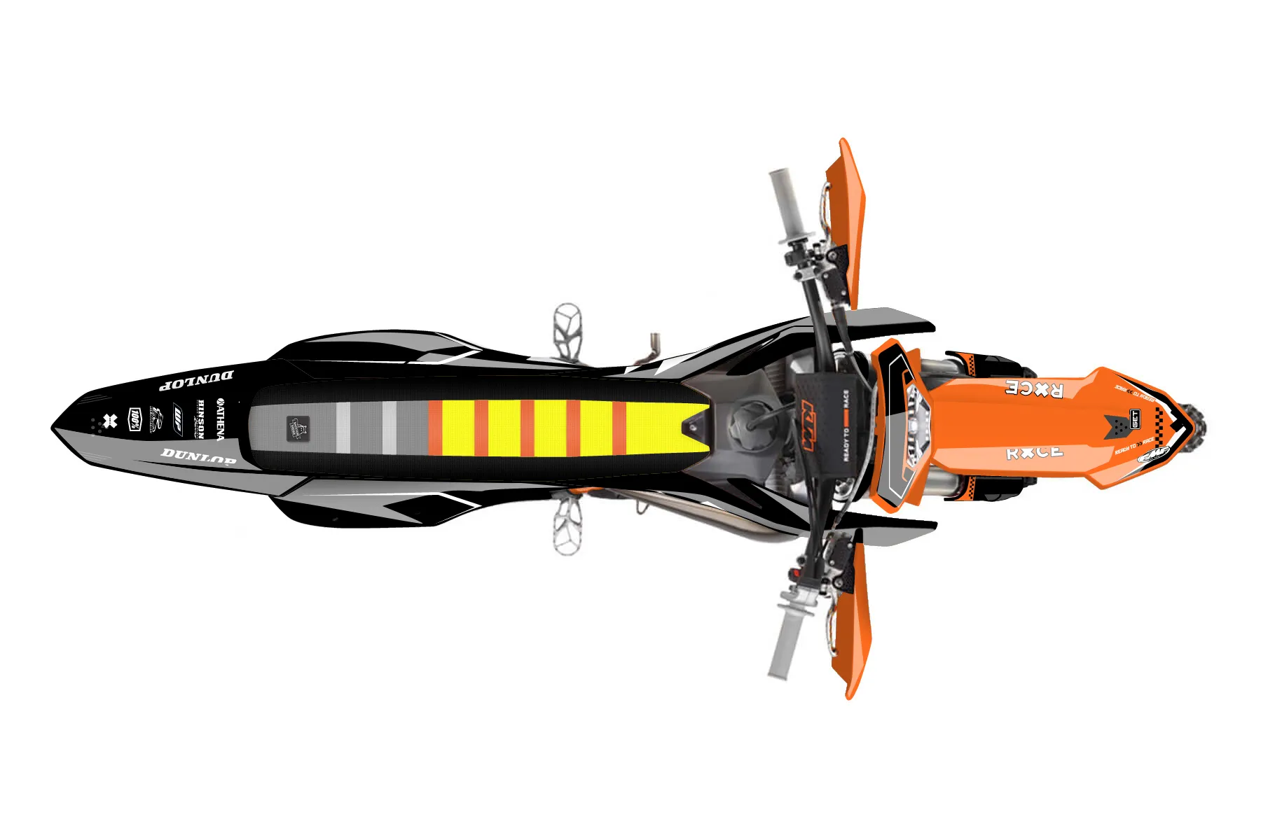 «Thrill» — готовый комплект графики серии Staple для KTM Enduro Graphic Kit KTM EXC 125 2014. В комплекте: графика на бак и боковые облицовки, крылья (переднее и заднее), передний щиток, номерные таблички, защита вилки. Материал: ПВХ-винил 80 мкр с холодной ламинацией 300 мкр, общая толщина 380 мкр; покрытие глянцевое или матовое на выбор. Устойчив к UV-излучению, воде, бензину и мойке высокого давления. Клей акриловый на сольвентной основе — постоянный, для гибких пластиков. На простых поверхностях монтируется без нагрева; для сложных изгибов рекомендуем фен. Этот пресет можно заказать как есть или взять за основу в конструкторе: поменять цвета, добавить стартовый номер и свой бренд. Производство — 3–5 рабочих дней, доставка по России СДЭКом или Почтой, по СНГ — курьерскими службами.