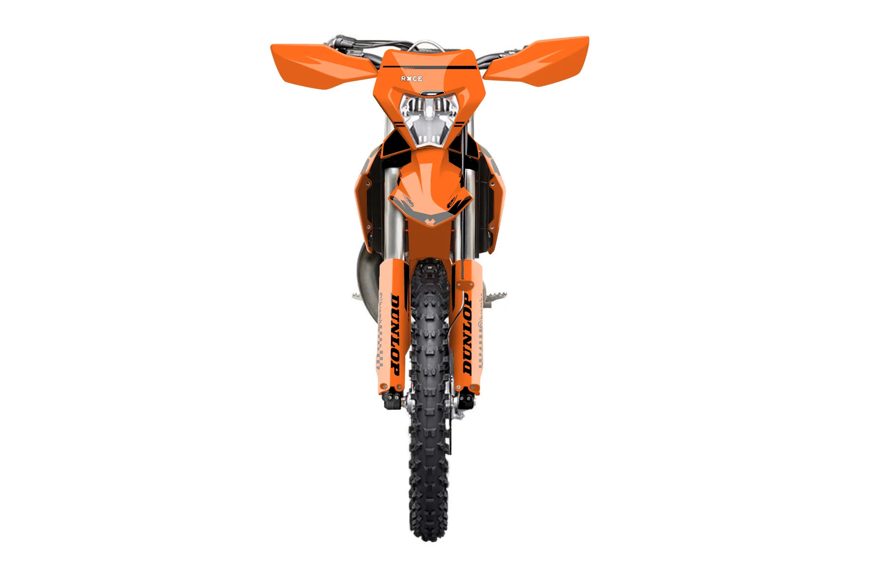 «Absolute» — готовый комплект графики серии Untucked для KTM Enduro Graphic Kit KTM EXC 125 2014. В комплекте: графика на бак и боковые облицовки, крылья (переднее и заднее), передний щиток, номерные таблички, защита вилки. Материал: ПВХ-винил 80 мкр с холодной ламинацией 300 мкр, общая толщина 380 мкр; покрытие глянцевое или матовое на выбор. Устойчив к UV-излучению, воде, бензину и мойке высокого давления. Клей акриловый на сольвентной основе — постоянный, для гибких пластиков. На простых поверхностях монтируется без нагрева; для сложных изгибов рекомендуем фен. Этот пресет можно заказать как есть или взять за основу в конструкторе: поменять цвета, добавить стартовый номер и свой бренд. Производство — 3–5 рабочих дней, доставка по России СДЭКом или Почтой, по СНГ — курьерскими службами.