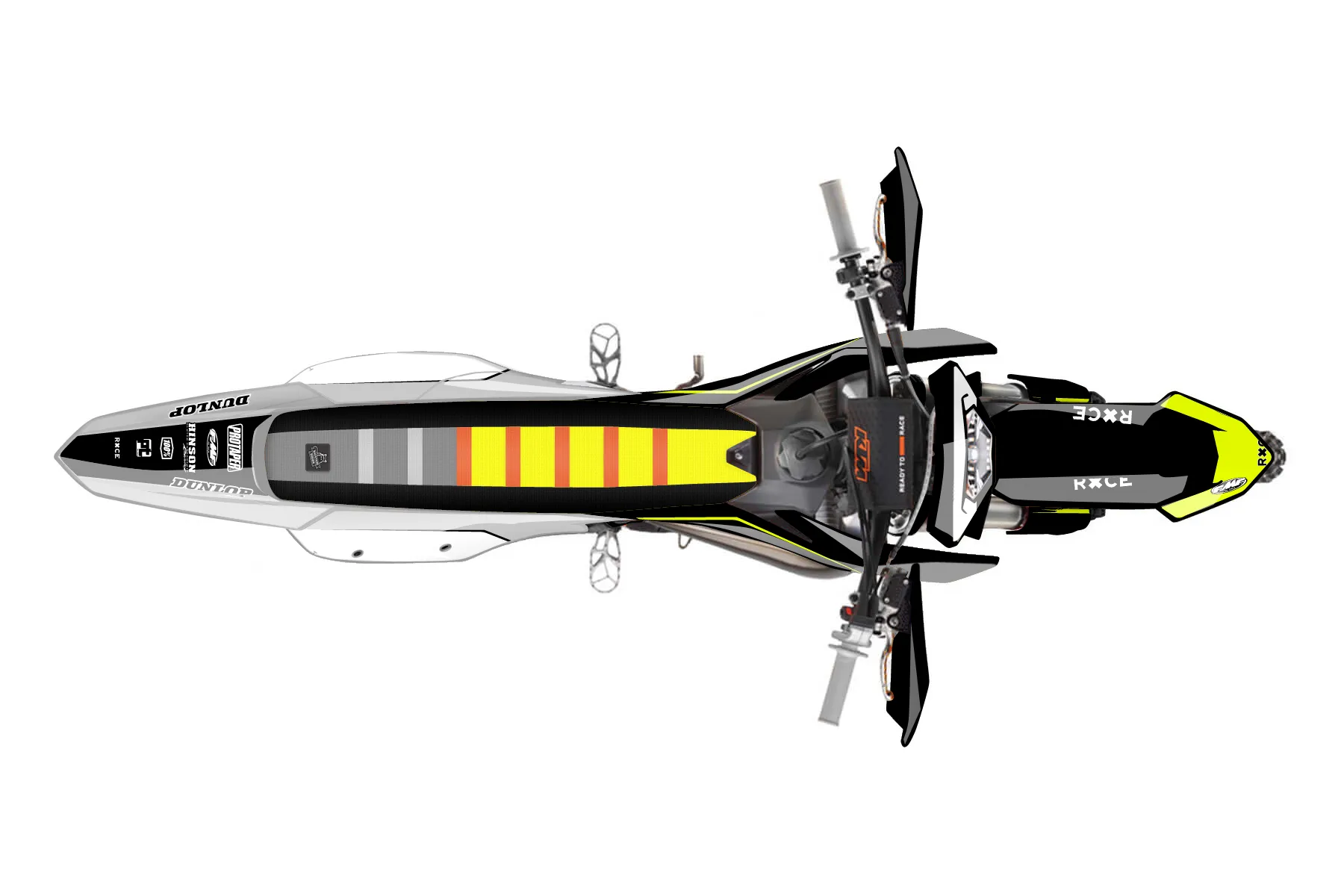 «Vivid Neon» — готовый комплект графики серии Untucked для KTM Enduro Graphic Kit KTM EXC 125 2014. В комплекте: графика на бак и боковые облицовки, крылья (переднее и заднее), передний щиток, номерные таблички, защита вилки. Материал: ПВХ-винил 80 мкр с холодной ламинацией 300 мкр, общая толщина 380 мкр; покрытие глянцевое или матовое на выбор. Устойчив к UV-излучению, воде, бензину и мойке высокого давления. Клей акриловый на сольвентной основе — постоянный, для гибких пластиков. На простых поверхностях монтируется без нагрева; для сложных изгибов рекомендуем фен. Этот пресет можно заказать как есть или взять за основу в конструкторе: поменять цвета, добавить стартовый номер и свой бренд. Производство — 3–5 рабочих дней, доставка по России СДЭКом или Почтой, по СНГ — курьерскими службами.