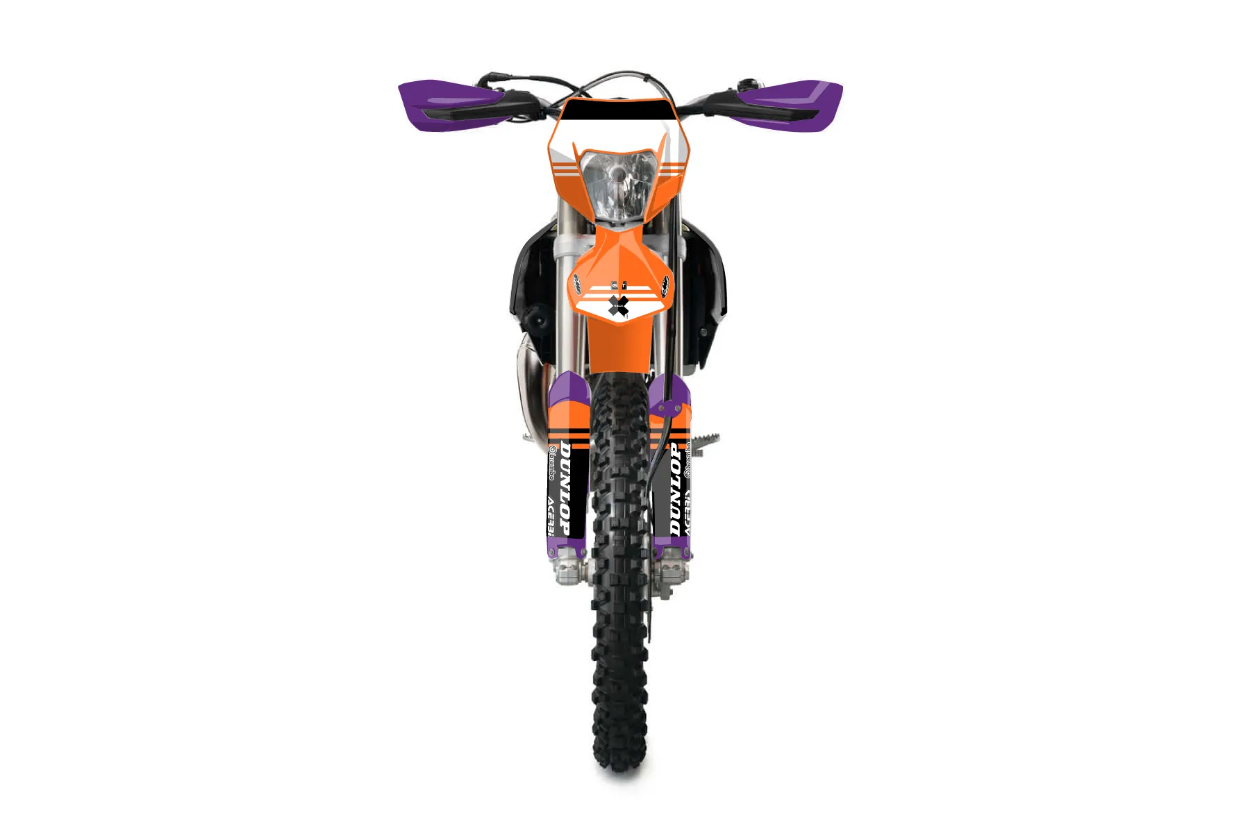 «Stripes Pro» — готовый комплект графики серии Fasthouse для KTM Enduro Graphic Kit KTM EXC 125 2016. В комплекте: графика на бак и боковые облицовки, крылья (переднее и заднее), передний щиток, номерные таблички, защита вилки. Материал: ПВХ-винил 80 мкр с холодной ламинацией 300 мкр, общая толщина 380 мкр; покрытие глянцевое или матовое на выбор. Устойчив к UV-излучению, воде, бензину и мойке высокого давления. Клей акриловый на сольвентной основе — постоянный, для гибких пластиков. На простых поверхностях монтируется без нагрева; для сложных изгибов рекомендуем фен. Этот пресет можно заказать как есть или взять за основу в конструкторе: поменять цвета, добавить стартовый номер и свой бренд. Производство — 3–5 рабочих дней, доставка по России СДЭКом или Почтой, по СНГ — курьерскими службами.