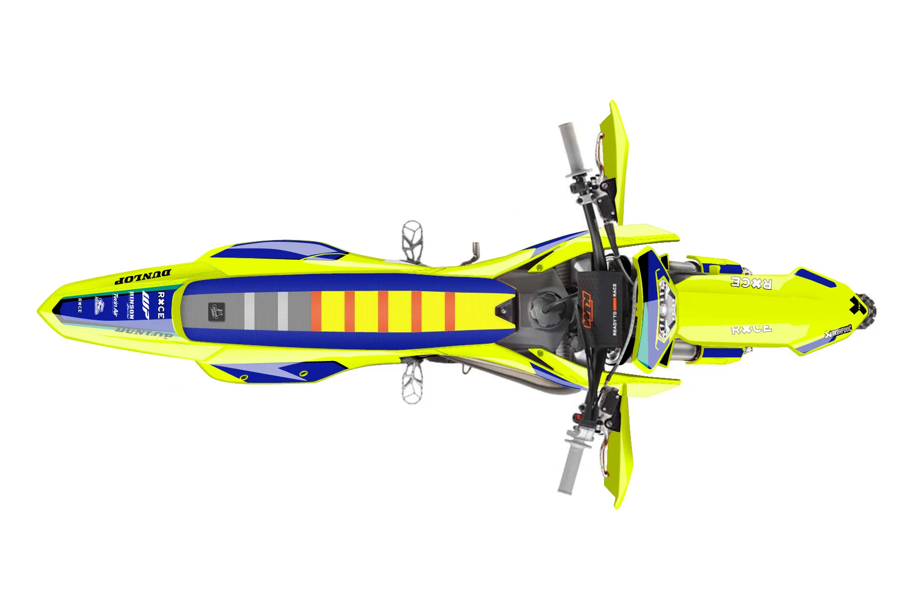 «Brilliant Neon» — готовый комплект графики серии Flow для KTM Enduro Graphic Kit KTM EXC 125 2016. В комплекте: графика на бак и боковые облицовки, крылья (переднее и заднее), передний щиток, номерные таблички, защита вилки. Материал: ПВХ-винил 80 мкр с холодной ламинацией 300 мкр, общая толщина 380 мкр; покрытие глянцевое или матовое на выбор. Устойчив к UV-излучению, воде, бензину и мойке высокого давления. Клей акриловый на сольвентной основе — постоянный, для гибких пластиков. На простых поверхностях монтируется без нагрева; для сложных изгибов рекомендуем фен. Этот пресет можно заказать как есть или взять за основу в конструкторе: поменять цвета, добавить стартовый номер и свой бренд. Производство — 3–5 рабочих дней, доставка по России СДЭКом или Почтой, по СНГ — курьерскими службами.