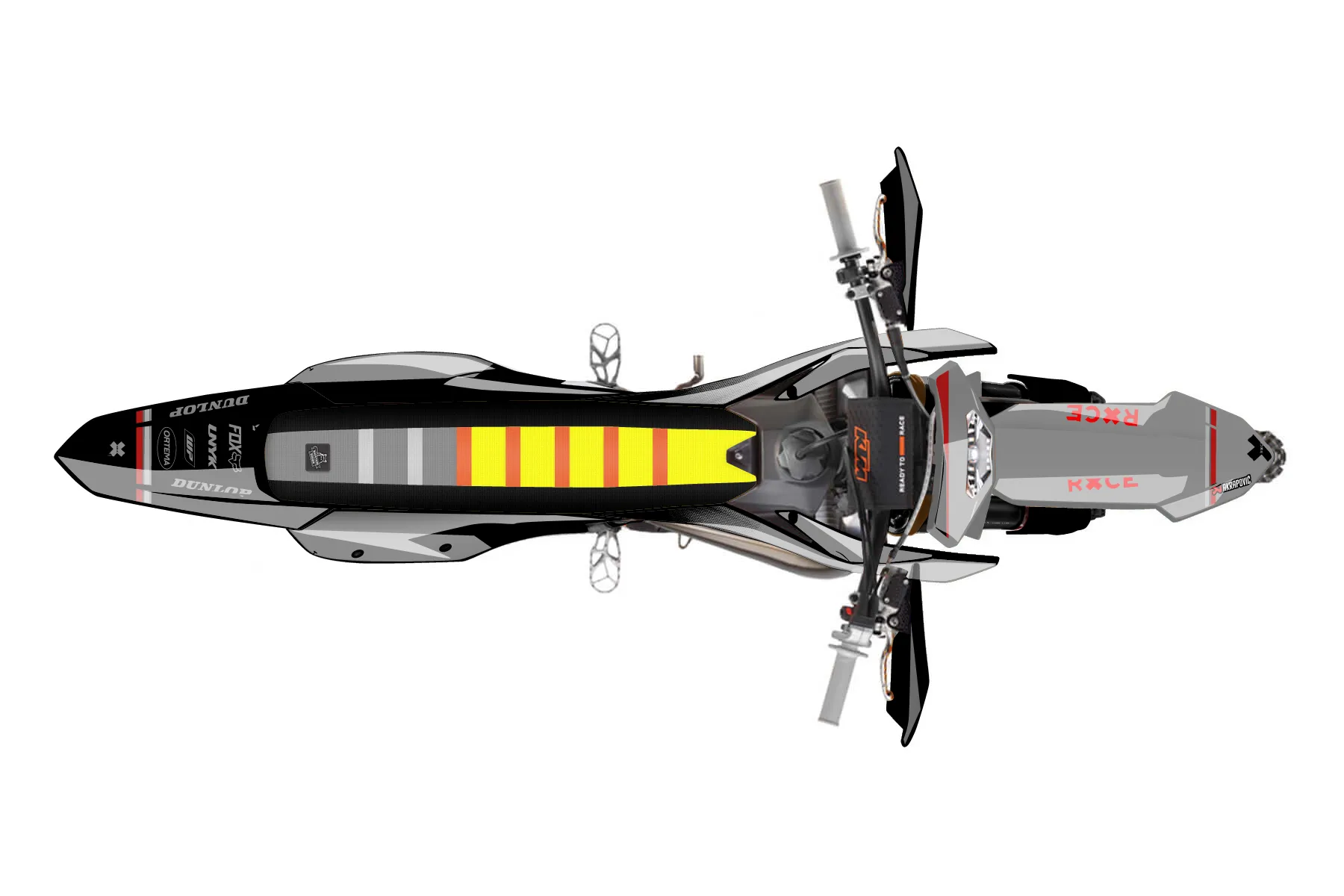 «Vital» — готовый комплект графики серии Maverick для KTM Enduro Graphic Kit KTM EXC 125 2016. В комплекте: графика на бак и боковые облицовки, крылья (переднее и заднее), передний щиток, номерные таблички, защита вилки. Материал: ПВХ-винил 80 мкр с холодной ламинацией 300 мкр, общая толщина 380 мкр; покрытие глянцевое или матовое на выбор. Устойчив к UV-излучению, воде, бензину и мойке высокого давления. Клей акриловый на сольвентной основе — постоянный, для гибких пластиков. На простых поверхностях монтируется без нагрева; для сложных изгибов рекомендуем фен. Этот пресет можно заказать как есть или взять за основу в конструкторе: поменять цвета, добавить стартовый номер и свой бренд. Производство — 3–5 рабочих дней, доставка по России СДЭКом или Почтой, по СНГ — курьерскими службами.