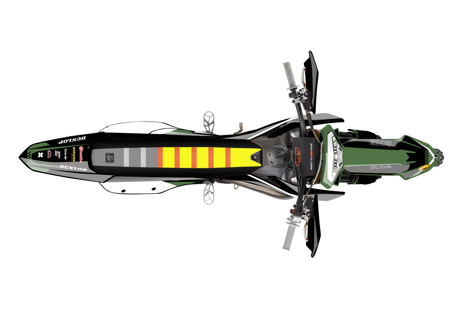 «Dub» — готовый комплект графики серии Staple для KTM Enduro Graphic Kit KTM EXC 125 2016. В комплекте: графика на бак и боковые облицовки, крылья (переднее и заднее), передний щиток, номерные таблички, защита вилки. Материал: ПВХ-винил 80 мкр с холодной ламинацией 300 мкр, общая толщина 380 мкр; покрытие глянцевое или матовое на выбор. Устойчив к UV-излучению, воде, бензину и мойке высокого давления. Клей акриловый на сольвентной основе — постоянный, для гибких пластиков. На простых поверхностях монтируется без нагрева; для сложных изгибов рекомендуем фен. Этот пресет можно заказать как есть или взять за основу в конструкторе: поменять цвета, добавить стартовый номер и свой бренд. Производство — 3–5 рабочих дней, доставка по России СДЭКом или Почтой, по СНГ — курьерскими службами.