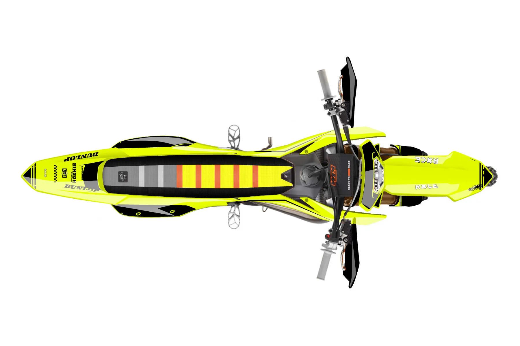 «Loose Neon» — готовый комплект графики серии Untucked для KTM Enduro Graphic Kit KTM EXC 125 2016. В комплекте: графика на бак и боковые облицовки, крылья (переднее и заднее), передний щиток, номерные таблички, защита вилки. Материал: ПВХ-винил 80 мкр с холодной ламинацией 300 мкр, общая толщина 380 мкр; покрытие глянцевое или матовое на выбор. Устойчив к UV-излучению, воде, бензину и мойке высокого давления. Клей акриловый на сольвентной основе — постоянный, для гибких пластиков. На простых поверхностях монтируется без нагрева; для сложных изгибов рекомендуем фен. Этот пресет можно заказать как есть или взять за основу в конструкторе: поменять цвета, добавить стартовый номер и свой бренд. Производство — 3–5 рабочих дней, доставка по России СДЭКом или Почтой, по СНГ — курьерскими службами.