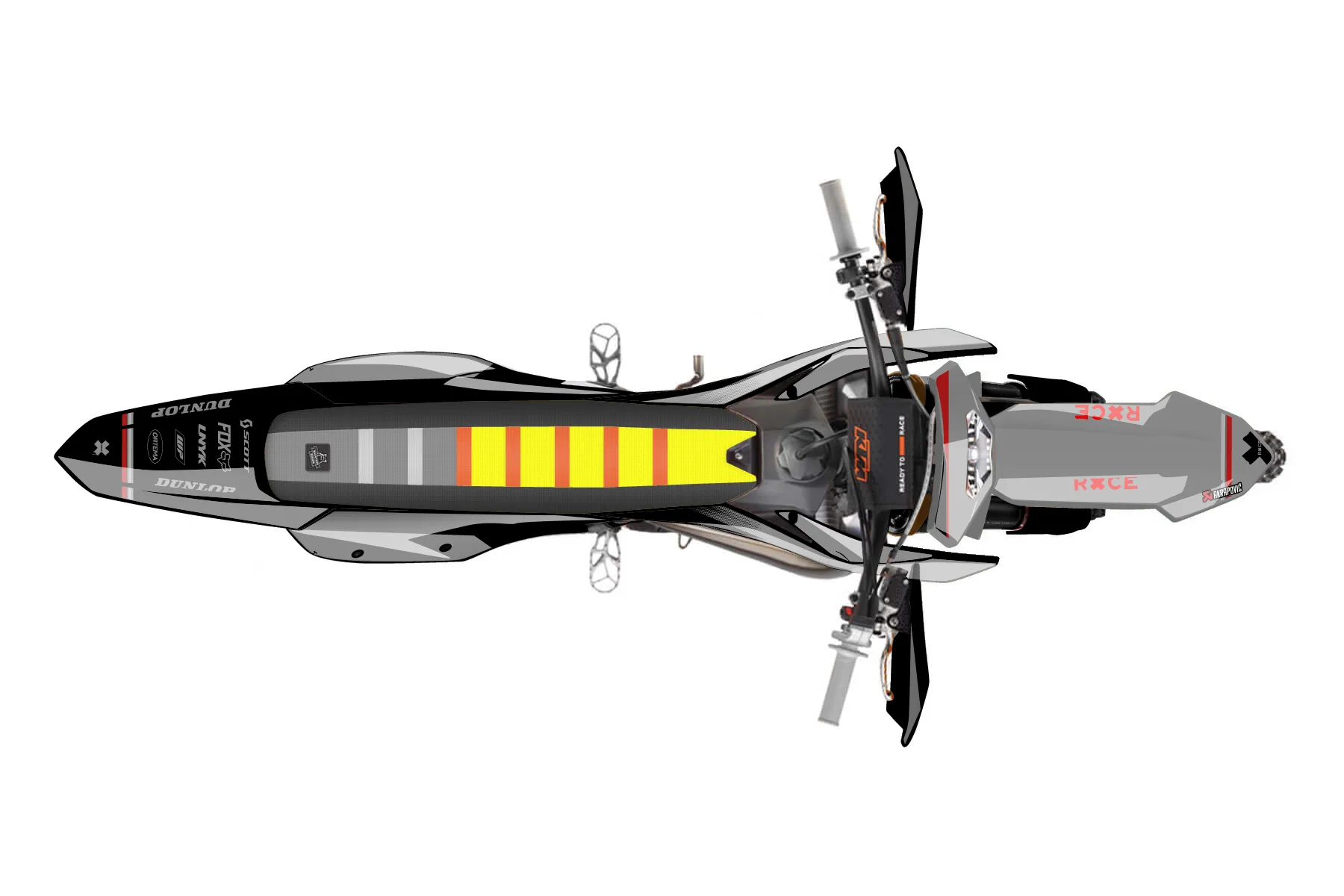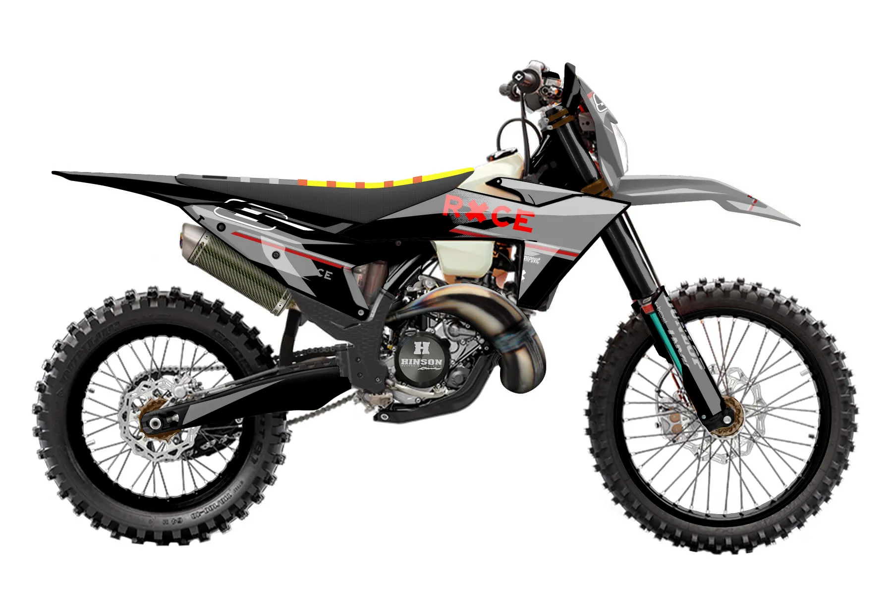 «Vital» — готовый комплект графики серии Maverick для KTM Enduro Graphic Kit KTM EXC 125 2017. В комплекте: графика на бак и боковые облицовки, крылья (переднее и заднее), передний щиток, номерные таблички, защита вилки. Материал: ПВХ-винил 80 мкр с холодной ламинацией 300 мкр, общая толщина 380 мкр; покрытие глянцевое или матовое на выбор. Устойчив к UV-излучению, воде, бензину и мойке высокого давления. Клей акриловый на сольвентной основе — постоянный, для гибких пластиков. На простых поверхностях монтируется без нагрева; для сложных изгибов рекомендуем фен. Этот пресет можно заказать как есть или взять за основу в конструкторе: поменять цвета, добавить стартовый номер и свой бренд. Производство — 3–5 рабочих дней, доставка по России СДЭКом или Почтой, по СНГ — курьерскими службами.