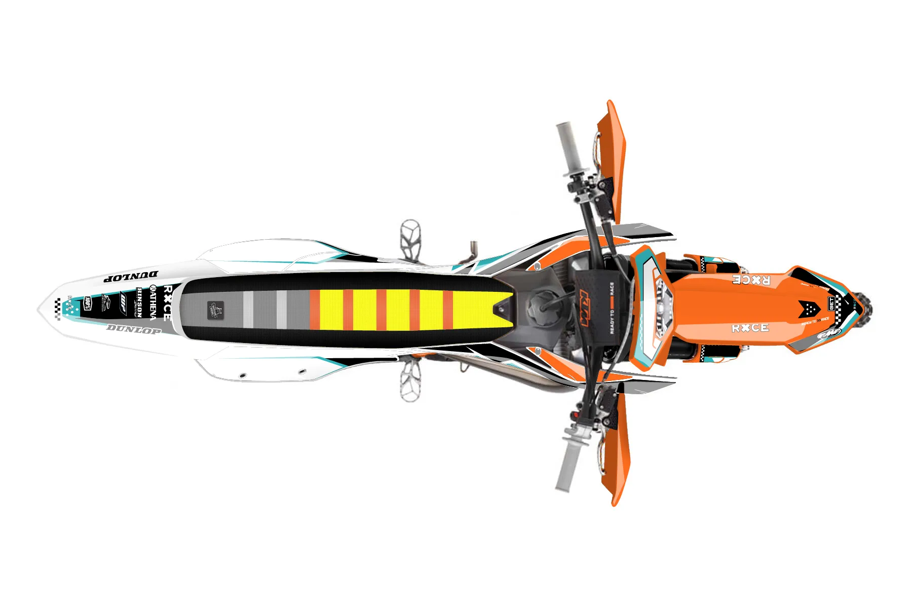 «Rutted» — готовый комплект графики серии Staple для KTM Enduro Graphic Kit KTM EXC 125 2017. В комплекте: графика на бак и боковые облицовки, крылья (переднее и заднее), передний щиток, номерные таблички, защита вилки. Материал: ПВХ-винил 80 мкр с холодной ламинацией 300 мкр, общая толщина 380 мкр; покрытие глянцевое или матовое на выбор. Устойчив к UV-излучению, воде, бензину и мойке высокого давления. Клей акриловый на сольвентной основе — постоянный, для гибких пластиков. На простых поверхностях монтируется без нагрева; для сложных изгибов рекомендуем фен. Этот пресет можно заказать как есть или взять за основу в конструкторе: поменять цвета, добавить стартовый номер и свой бренд. Производство — 3–5 рабочих дней, доставка по России СДЭКом или Почтой, по СНГ — курьерскими службами.