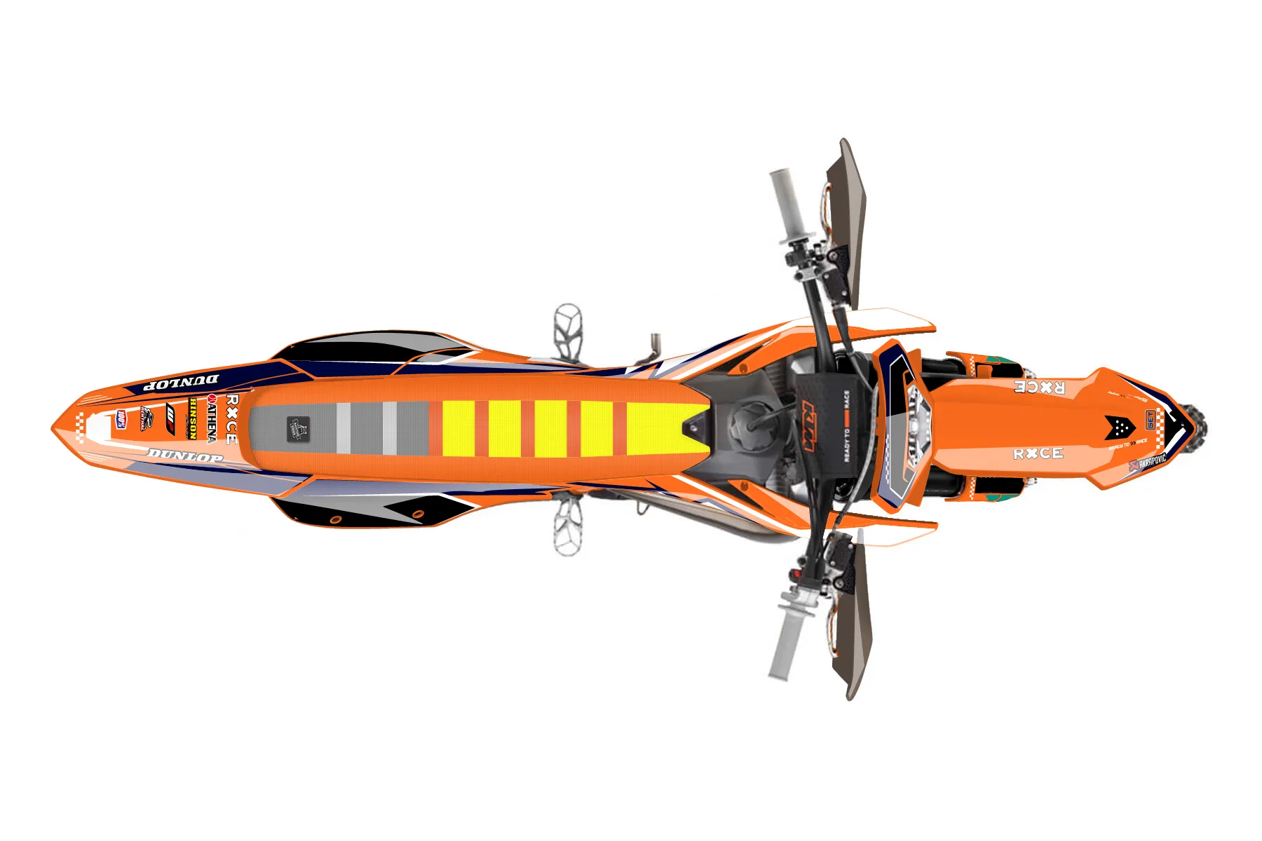 «Zipped» — готовый комплект графики серии Staple для KTM Enduro Graphic Kit KTM EXC 125 2017. В комплекте: графика на бак и боковые облицовки, крылья (переднее и заднее), передний щиток, номерные таблички, защита вилки. Материал: ПВХ-винил 80 мкр с холодной ламинацией 300 мкр, общая толщина 380 мкр; покрытие глянцевое или матовое на выбор. Устойчив к UV-излучению, воде, бензину и мойке высокого давления. Клей акриловый на сольвентной основе — постоянный, для гибких пластиков. На простых поверхностях монтируется без нагрева; для сложных изгибов рекомендуем фен. Этот пресет можно заказать как есть или взять за основу в конструкторе: поменять цвета, добавить стартовый номер и свой бренд. Производство — 3–5 рабочих дней, доставка по России СДЭКом или Почтой, по СНГ — курьерскими службами.