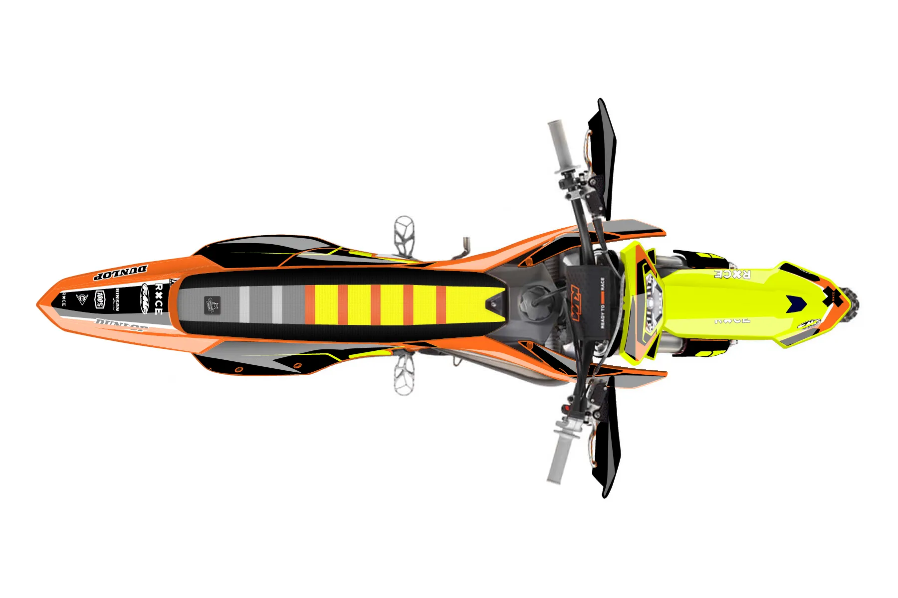 «Fluorescent» — готовый комплект графики серии Flow для KTM Enduro Graphic Kit KTM EXC 125 2020. В комплекте: графика на бак и боковые облицовки, крылья (переднее и заднее), передний щиток, номерные таблички, защита вилки. Материал: ПВХ-винил 80 мкр с холодной ламинацией 300 мкр, общая толщина 380 мкр; покрытие глянцевое или матовое на выбор. Устойчив к UV-излучению, воде, бензину и мойке высокого давления. Клей акриловый на сольвентной основе — постоянный, для гибких пластиков. На простых поверхностях монтируется без нагрева; для сложных изгибов рекомендуем фен. Этот пресет можно заказать как есть или взять за основу в конструкторе: поменять цвета, добавить стартовый номер и свой бренд. Производство — 3–5 рабочих дней, доставка по России СДЭКом или Почтой, по СНГ — курьерскими службами.