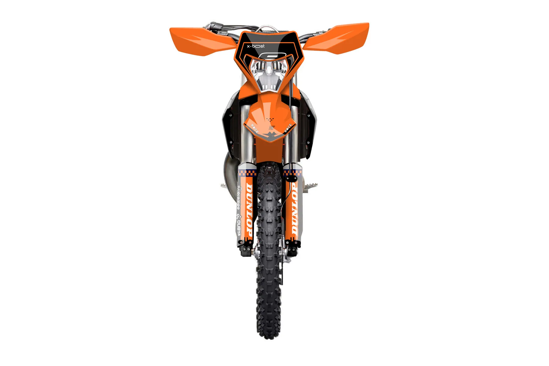 «Cape» — готовый комплект графики серии Staple для KTM Enduro Graphic Kit KTM EXC 125 2020. В комплекте: графика на бак и боковые облицовки, крылья (переднее и заднее), передний щиток, номерные таблички, защита вилки. Материал: ПВХ-винил 80 мкр с холодной ламинацией 300 мкр, общая толщина 380 мкр; покрытие глянцевое или матовое на выбор. Устойчив к UV-излучению, воде, бензину и мойке высокого давления. Клей акриловый на сольвентной основе — постоянный, для гибких пластиков. На простых поверхностях монтируется без нагрева; для сложных изгибов рекомендуем фен. Этот пресет можно заказать как есть или взять за основу в конструкторе: поменять цвета, добавить стартовый номер и свой бренд. Производство — 3–5 рабочих дней, доставка по России СДЭКом или Почтой, по СНГ — курьерскими службами.