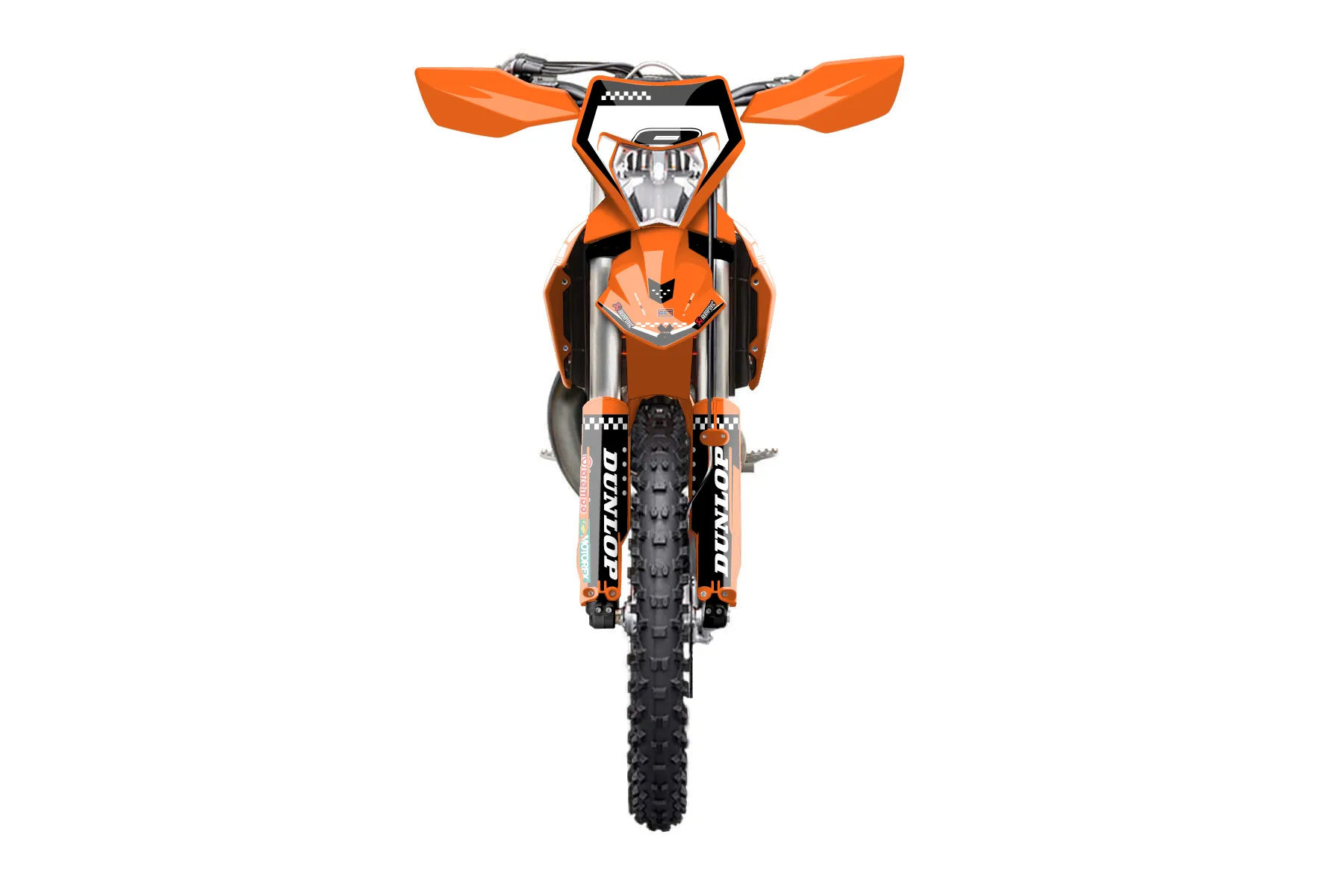 «Volt» — готовый комплект графики серии Staple для KTM Enduro Graphic Kit KTM EXC 125 2020. В комплекте: графика на бак и боковые облицовки, крылья (переднее и заднее), передний щиток, номерные таблички, защита вилки. Материал: ПВХ-винил 80 мкр с холодной ламинацией 300 мкр, общая толщина 380 мкр; покрытие глянцевое или матовое на выбор. Устойчив к UV-излучению, воде, бензину и мойке высокого давления. Клей акриловый на сольвентной основе — постоянный, для гибких пластиков. На простых поверхностях монтируется без нагрева; для сложных изгибов рекомендуем фен. Этот пресет можно заказать как есть или взять за основу в конструкторе: поменять цвета, добавить стартовый номер и свой бренд. Производство — 3–5 рабочих дней, доставка по России СДЭКом или Почтой, по СНГ — курьерскими службами.