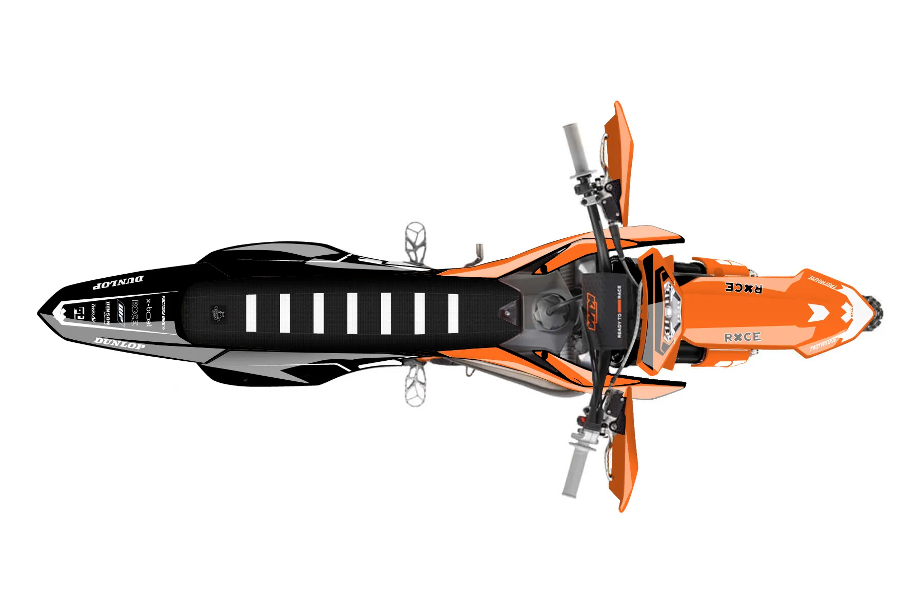 «Visonary» — готовый комплект графики серии Flow для KTM Enduro Graphic Kit KTM EXC 125 2024. В комплекте: графика на бак и боковые облицовки, крылья (переднее и заднее), передний щиток, номерные таблички, защита вилки. Материал: ПВХ-винил 80 мкр с холодной ламинацией 300 мкр, общая толщина 380 мкр; покрытие глянцевое или матовое на выбор. Устойчив к UV-излучению, воде, бензину и мойке высокого давления. Клей акриловый на сольвентной основе — постоянный, для гибких пластиков. На простых поверхностях монтируется без нагрева; для сложных изгибов рекомендуем фен. Этот пресет можно заказать как есть или взять за основу в конструкторе: поменять цвета, добавить стартовый номер и свой бренд. Производство — 3–5 рабочих дней, доставка по России СДЭКом или Почтой, по СНГ — курьерскими службами.