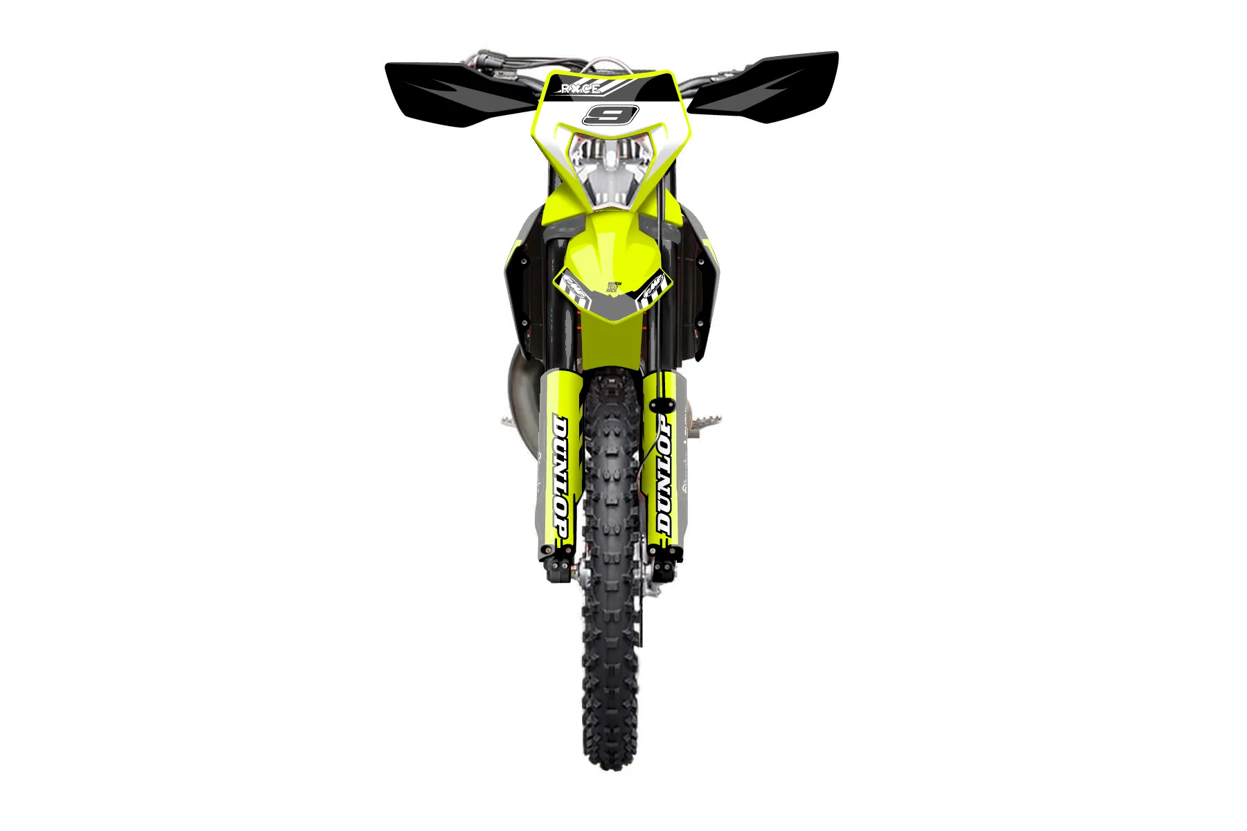«Volt Neon» — готовый комплект графики серии Maverick для KTM Enduro Graphic Kit KTM EXC 125 2024. В комплекте: графика на бак и боковые облицовки, крылья (переднее и заднее), передний щиток, номерные таблички, защита вилки. Материал: ПВХ-винил 80 мкр с холодной ламинацией 300 мкр, общая толщина 380 мкр; покрытие глянцевое или матовое на выбор. Устойчив к UV-излучению, воде, бензину и мойке высокого давления. Клей акриловый на сольвентной основе — постоянный, для гибких пластиков. На простых поверхностях монтируется без нагрева; для сложных изгибов рекомендуем фен. Этот пресет можно заказать как есть или взять за основу в конструкторе: поменять цвета, добавить стартовый номер и свой бренд. Производство — 3–5 рабочих дней, доставка по России СДЭКом или Почтой, по СНГ — курьерскими службами.
