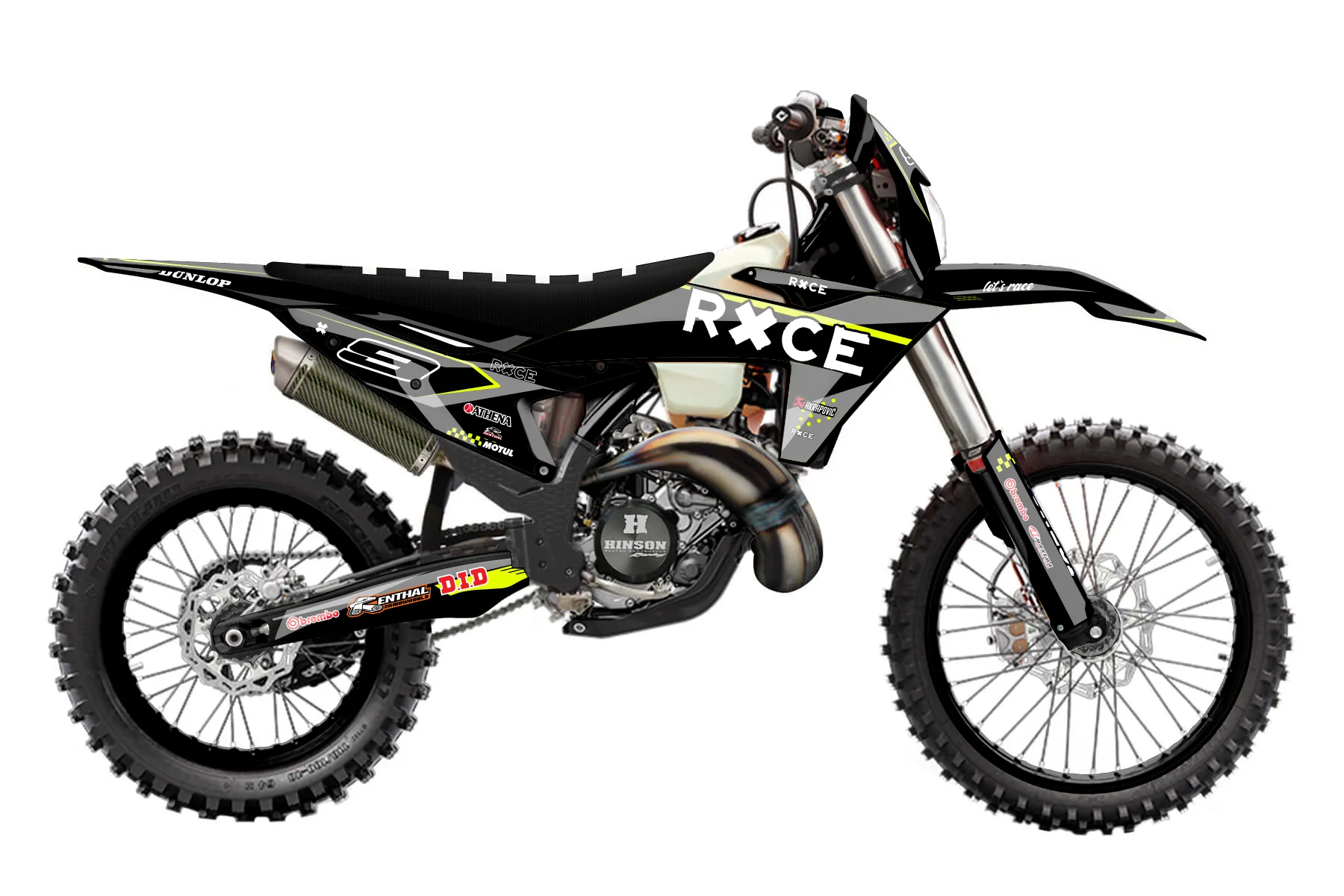 «Refuse Neon» — готовый комплект графики серии Staple для KTM Enduro Graphic Kit KTM EXC 125 2024. В комплекте: графика на бак и боковые облицовки, крылья (переднее и заднее), передний щиток, номерные таблички, защита вилки. Материал: ПВХ-винил 80 мкр с холодной ламинацией 300 мкр, общая толщина 380 мкр; покрытие глянцевое или матовое на выбор. Устойчив к UV-излучению, воде, бензину и мойке высокого давления. Клей акриловый на сольвентной основе — постоянный, для гибких пластиков. На простых поверхностях монтируется без нагрева; для сложных изгибов рекомендуем фен. Этот пресет можно заказать как есть или взять за основу в конструкторе: поменять цвета, добавить стартовый номер и свой бренд. Производство — 3–5 рабочих дней, доставка по России СДЭКом или Почтой, по СНГ — курьерскими службами.