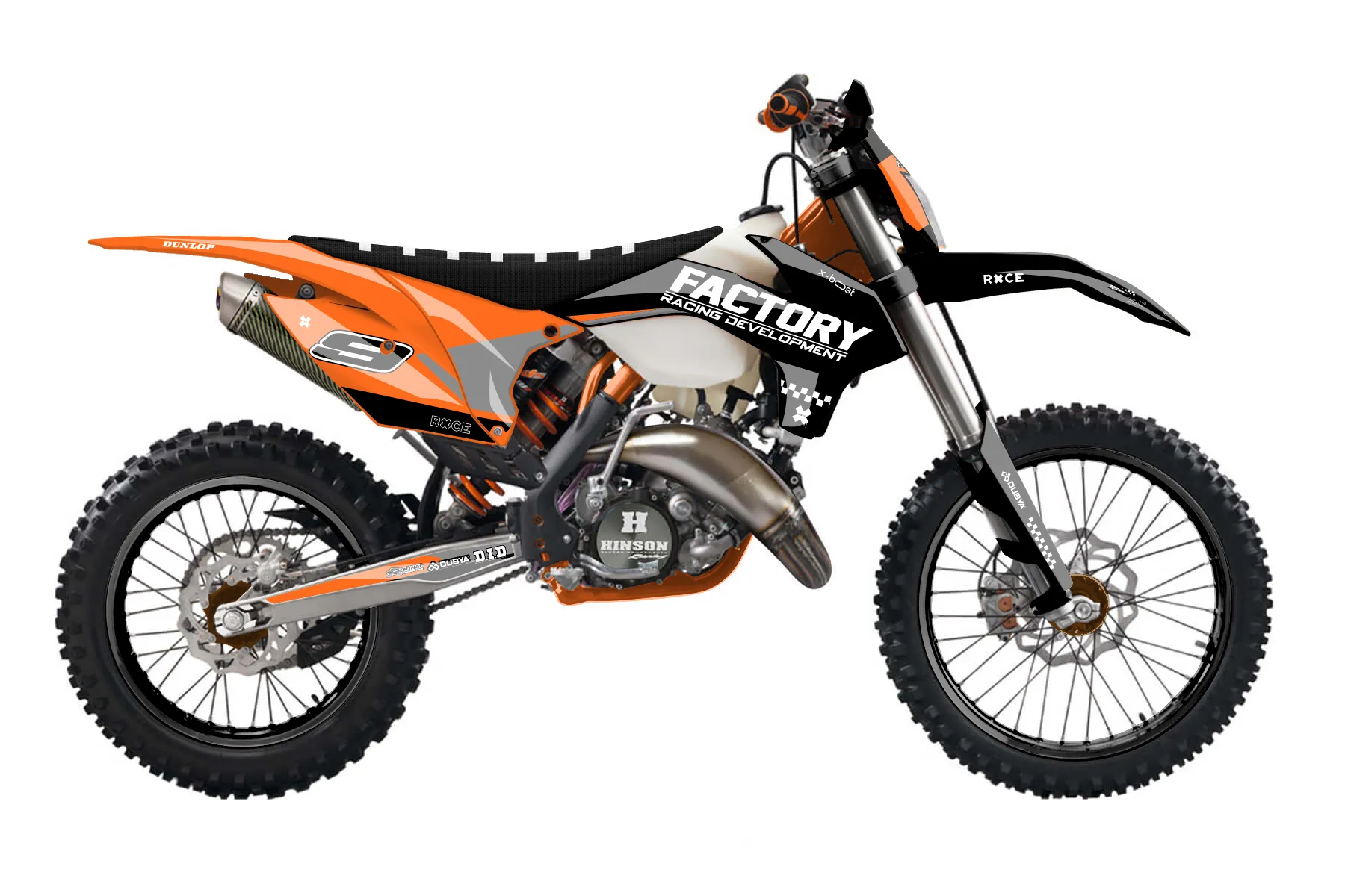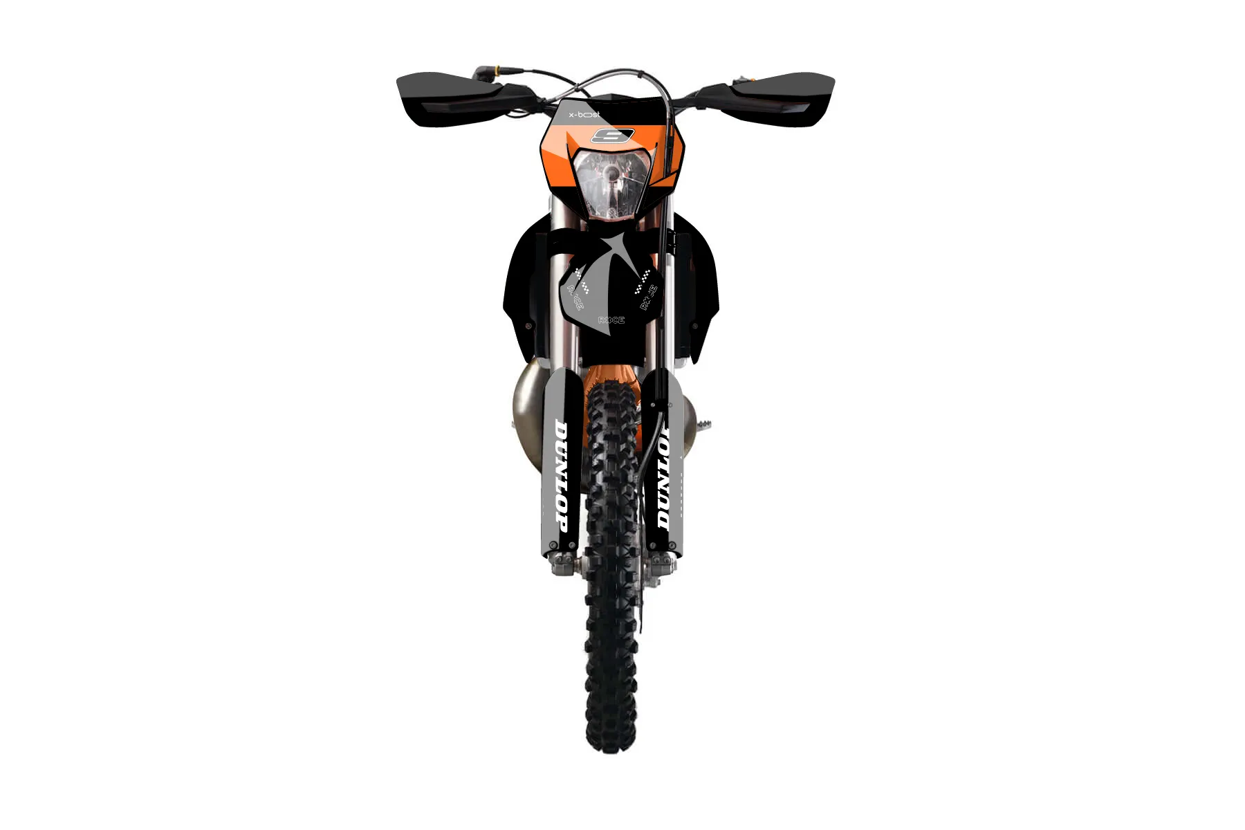 «Beyond» — готовый комплект графики серии Flow для KTM Enduro Graphic Kit KTM EXC 150 2014. В комплекте: графика на бак и боковые облицовки, крылья (переднее и заднее), передний щиток, номерные таблички, защита вилки. Материал: ПВХ-винил 80 мкр с холодной ламинацией 300 мкр, общая толщина 380 мкр; покрытие глянцевое или матовое на выбор. Устойчив к UV-излучению, воде, бензину и мойке высокого давления. Клей акриловый на сольвентной основе — постоянный, для гибких пластиков. На простых поверхностях монтируется без нагрева; для сложных изгибов рекомендуем фен. Этот пресет можно заказать как есть или взять за основу в конструкторе: поменять цвета, добавить стартовый номер и свой бренд. Производство — 3–5 рабочих дней, доставка по России СДЭКом или Почтой, по СНГ — курьерскими службами.