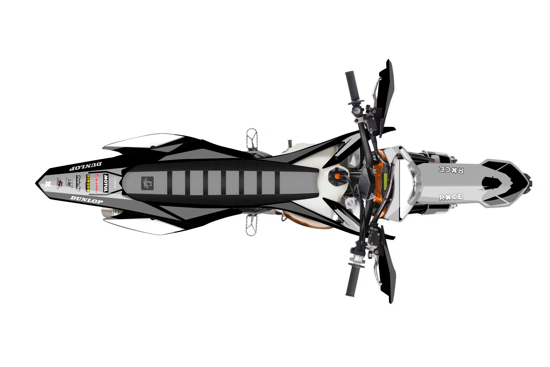 «Concepts» — готовый комплект графики серии Flow для KTM Enduro Graphic Kit KTM EXC 150 2014. В комплекте: графика на бак и боковые облицовки, крылья (переднее и заднее), передний щиток, номерные таблички, защита вилки. Материал: ПВХ-винил 80 мкр с холодной ламинацией 300 мкр, общая толщина 380 мкр; покрытие глянцевое или матовое на выбор. Устойчив к UV-излучению, воде, бензину и мойке высокого давления. Клей акриловый на сольвентной основе — постоянный, для гибких пластиков. На простых поверхностях монтируется без нагрева; для сложных изгибов рекомендуем фен. Этот пресет можно заказать как есть или взять за основу в конструкторе: поменять цвета, добавить стартовый номер и свой бренд. Производство — 3–5 рабочих дней, доставка по России СДЭКом или Почтой, по СНГ — курьерскими службами.
