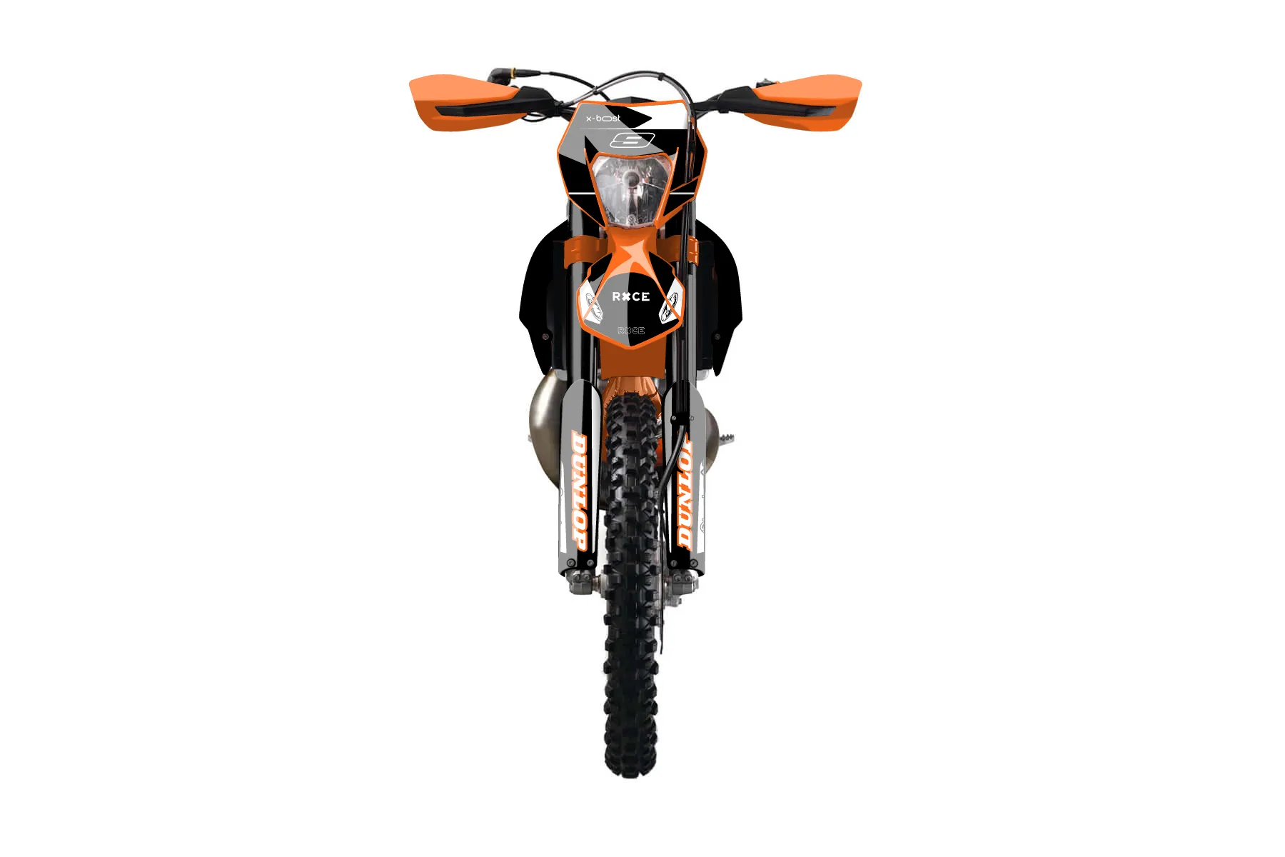 «Race» — готовый комплект графики серии Flow для KTM Enduro Graphic Kit KTM EXC 150 2014. В комплекте: графика на бак и боковые облицовки, крылья (переднее и заднее), передний щиток, номерные таблички, защита вилки. Материал: ПВХ-винил 80 мкр с холодной ламинацией 300 мкр, общая толщина 380 мкр; покрытие глянцевое или матовое на выбор. Устойчив к UV-излучению, воде, бензину и мойке высокого давления. Клей акриловый на сольвентной основе — постоянный, для гибких пластиков. На простых поверхностях монтируется без нагрева; для сложных изгибов рекомендуем фен. Этот пресет можно заказать как есть или взять за основу в конструкторе: поменять цвета, добавить стартовый номер и свой бренд. Производство — 3–5 рабочих дней, доставка по России СДЭКом или Почтой, по СНГ — курьерскими службами.