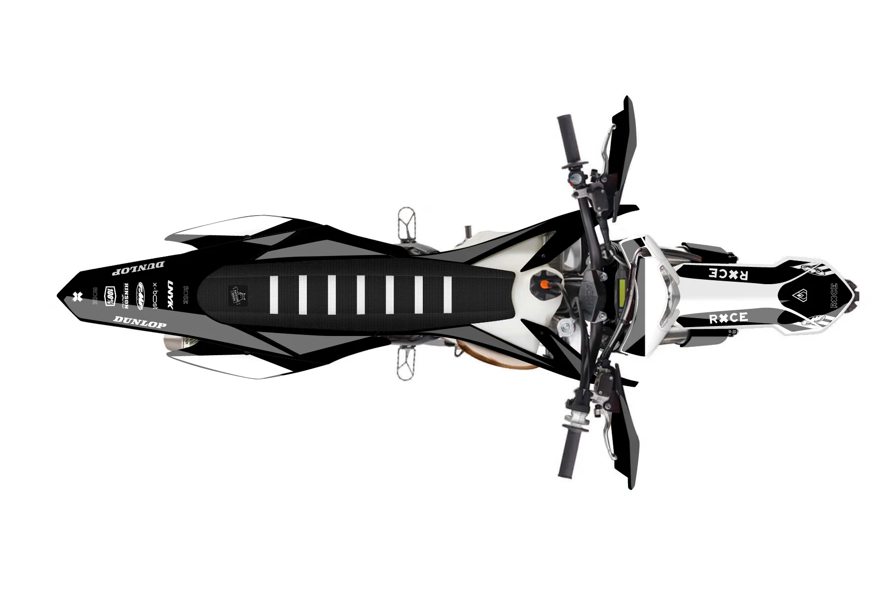 «DeCore» — готовый комплект графики серии Maverick для KTM Enduro Graphic Kit KTM EXC 150 2014. В комплекте: графика на бак и боковые облицовки, крылья (переднее и заднее), передний щиток, номерные таблички, защита вилки. Материал: ПВХ-винил 80 мкр с холодной ламинацией 300 мкр, общая толщина 380 мкр; покрытие глянцевое или матовое на выбор. Устойчив к UV-излучению, воде, бензину и мойке высокого давления. Клей акриловый на сольвентной основе — постоянный, для гибких пластиков. На простых поверхностях монтируется без нагрева; для сложных изгибов рекомендуем фен. Этот пресет можно заказать как есть или взять за основу в конструкторе: поменять цвета, добавить стартовый номер и свой бренд. Производство — 3–5 рабочих дней, доставка по России СДЭКом или Почтой, по СНГ — курьерскими службами.
