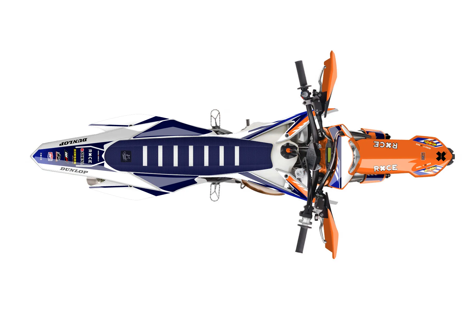 «Fuzion» — готовый комплект графики серии Maverick для KTM Enduro Graphic Kit KTM EXC 150 2014. В комплекте: графика на бак и боковые облицовки, крылья (переднее и заднее), передний щиток, номерные таблички, защита вилки. Материал: ПВХ-винил 80 мкр с холодной ламинацией 300 мкр, общая толщина 380 мкр; покрытие глянцевое или матовое на выбор. Устойчив к UV-излучению, воде, бензину и мойке высокого давления. Клей акриловый на сольвентной основе — постоянный, для гибких пластиков. На простых поверхностях монтируется без нагрева; для сложных изгибов рекомендуем фен. Этот пресет можно заказать как есть или взять за основу в конструкторе: поменять цвета, добавить стартовый номер и свой бренд. Производство — 3–5 рабочих дней, доставка по России СДЭКом или Почтой, по СНГ — курьерскими службами.