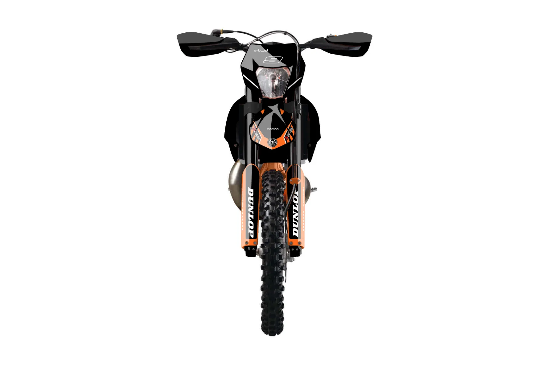 «Mental» — готовый комплект графики серии Maverick для KTM Enduro Graphic Kit KTM EXC 150 2014. В комплекте: графика на бак и боковые облицовки, крылья (переднее и заднее), передний щиток, номерные таблички, защита вилки. Материал: ПВХ-винил 80 мкр с холодной ламинацией 300 мкр, общая толщина 380 мкр; покрытие глянцевое или матовое на выбор. Устойчив к UV-излучению, воде, бензину и мойке высокого давления. Клей акриловый на сольвентной основе — постоянный, для гибких пластиков. На простых поверхностях монтируется без нагрева; для сложных изгибов рекомендуем фен. Этот пресет можно заказать как есть или взять за основу в конструкторе: поменять цвета, добавить стартовый номер и свой бренд. Производство — 3–5 рабочих дней, доставка по России СДЭКом или Почтой, по СНГ — курьерскими службами.