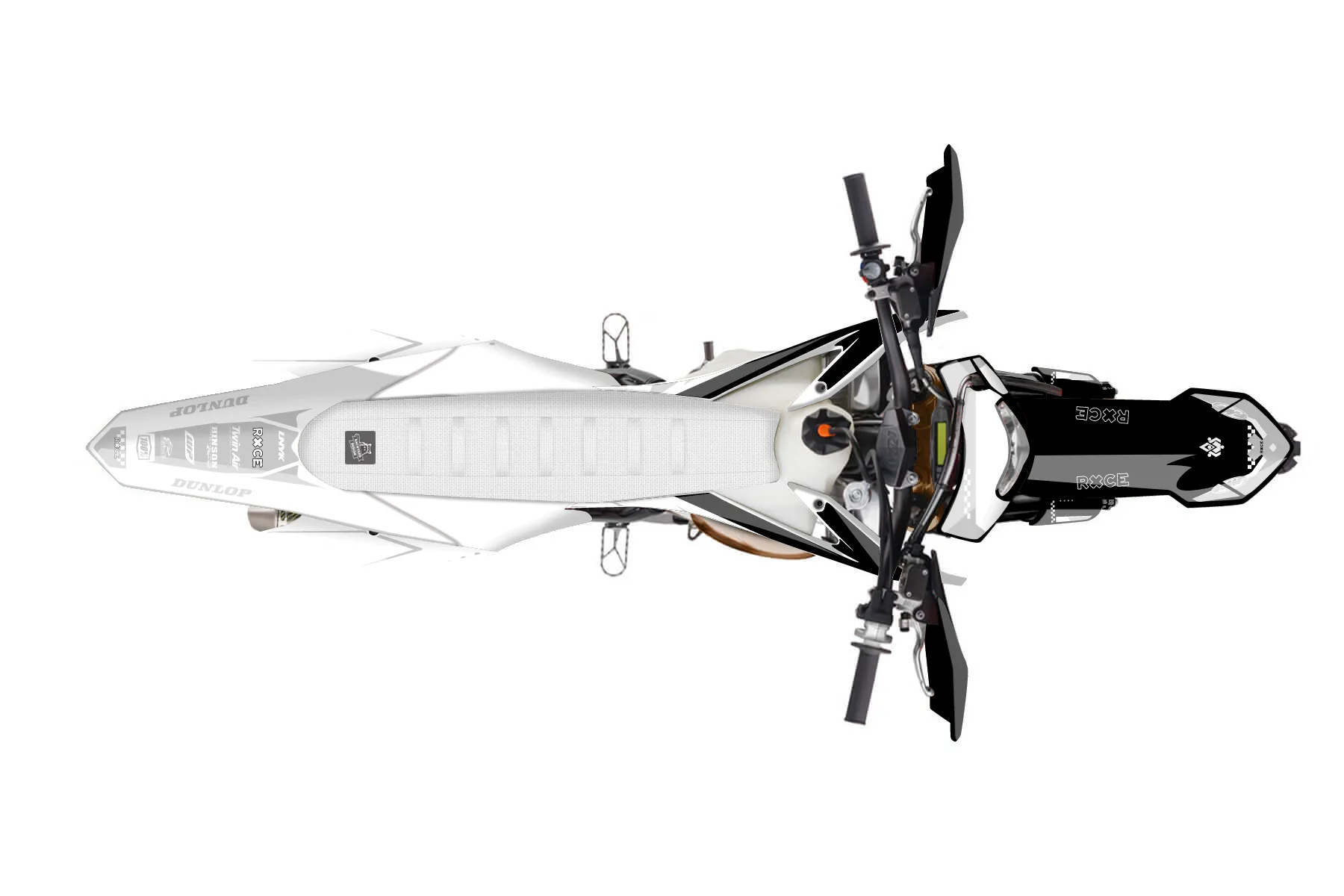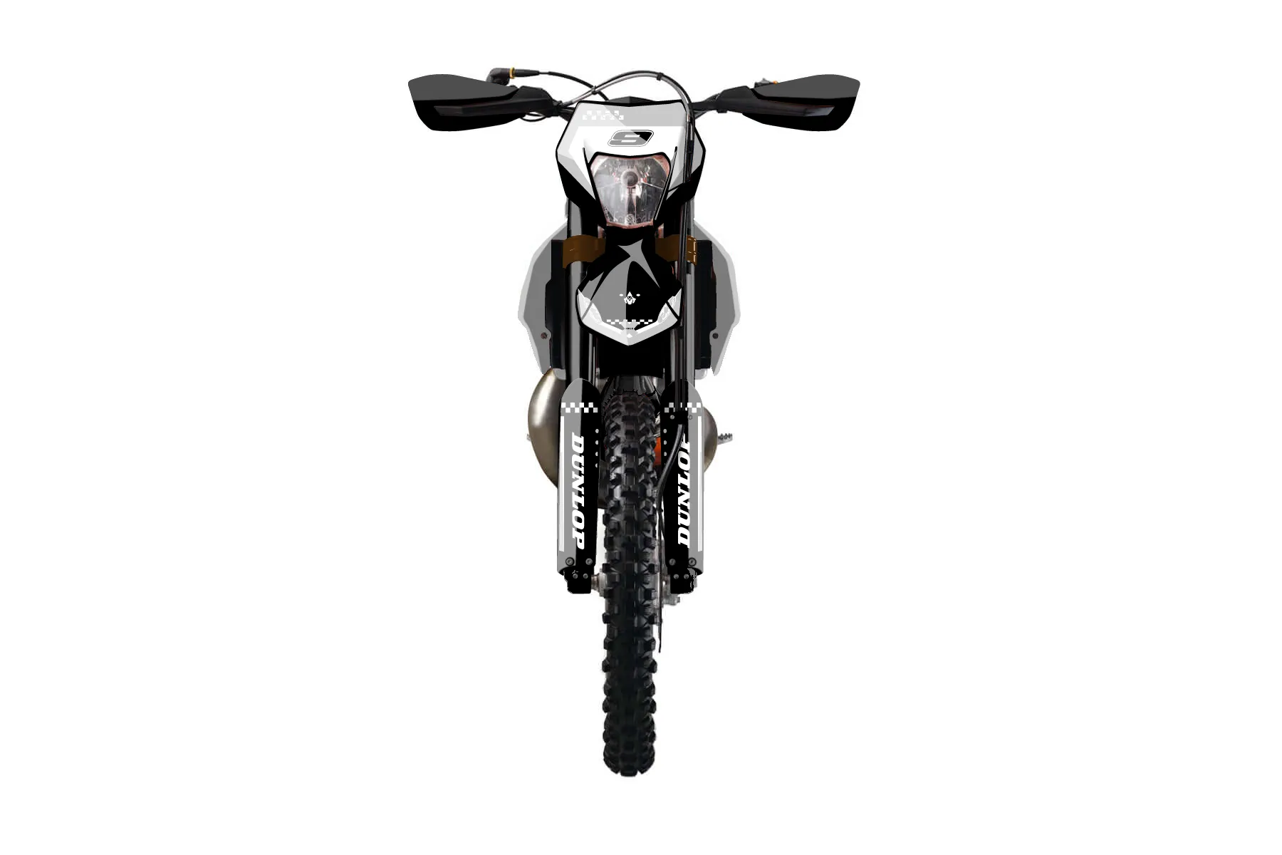 «Charge» — готовый комплект графики серии Staple для KTM Enduro Graphic Kit KTM EXC 150 2014. В комплекте: графика на бак и боковые облицовки, крылья (переднее и заднее), передний щиток, номерные таблички, защита вилки. Материал: ПВХ-винил 80 мкр с холодной ламинацией 300 мкр, общая толщина 380 мкр; покрытие глянцевое или матовое на выбор. Устойчив к UV-излучению, воде, бензину и мойке высокого давления. Клей акриловый на сольвентной основе — постоянный, для гибких пластиков. На простых поверхностях монтируется без нагрева; для сложных изгибов рекомендуем фен. Этот пресет можно заказать как есть или взять за основу в конструкторе: поменять цвета, добавить стартовый номер и свой бренд. Производство — 3–5 рабочих дней, доставка по России СДЭКом или Почтой, по СНГ — курьерскими службами.