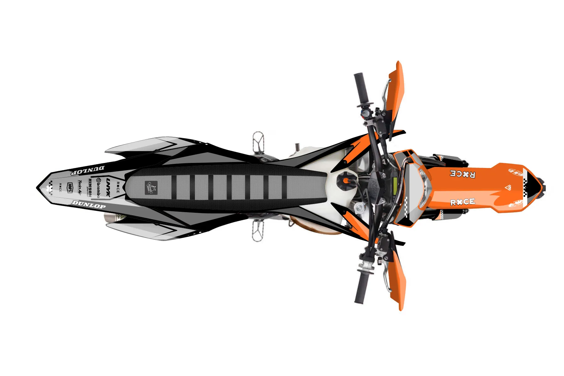 «Groove» — готовый комплект графики серии Staple для KTM Enduro Graphic Kit KTM EXC 150 2014. В комплекте: графика на бак и боковые облицовки, крылья (переднее и заднее), передний щиток, номерные таблички, защита вилки. Материал: ПВХ-винил 80 мкр с холодной ламинацией 300 мкр, общая толщина 380 мкр; покрытие глянцевое или матовое на выбор. Устойчив к UV-излучению, воде, бензину и мойке высокого давления. Клей акриловый на сольвентной основе — постоянный, для гибких пластиков. На простых поверхностях монтируется без нагрева; для сложных изгибов рекомендуем фен. Этот пресет можно заказать как есть или взять за основу в конструкторе: поменять цвета, добавить стартовый номер и свой бренд. Производство — 3–5 рабочих дней, доставка по России СДЭКом или Почтой, по СНГ — курьерскими службами.
