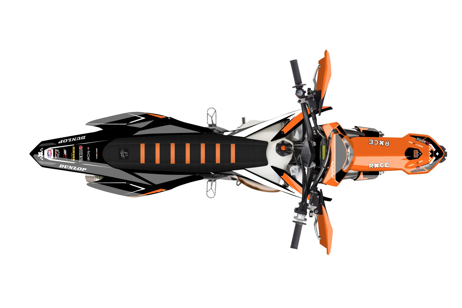 «Leak» — готовый комплект графики серии Staple для KTM Enduro Graphic Kit KTM EXC 150 2014. В комплекте: графика на бак и боковые облицовки, крылья (переднее и заднее), передний щиток, номерные таблички, защита вилки. Материал: ПВХ-винил 80 мкр с холодной ламинацией 300 мкр, общая толщина 380 мкр; покрытие глянцевое или матовое на выбор. Устойчив к UV-излучению, воде, бензину и мойке высокого давления. Клей акриловый на сольвентной основе — постоянный, для гибких пластиков. На простых поверхностях монтируется без нагрева; для сложных изгибов рекомендуем фен. Этот пресет можно заказать как есть или взять за основу в конструкторе: поменять цвета, добавить стартовый номер и свой бренд. Производство — 3–5 рабочих дней, доставка по России СДЭКом или Почтой, по СНГ — курьерскими службами.