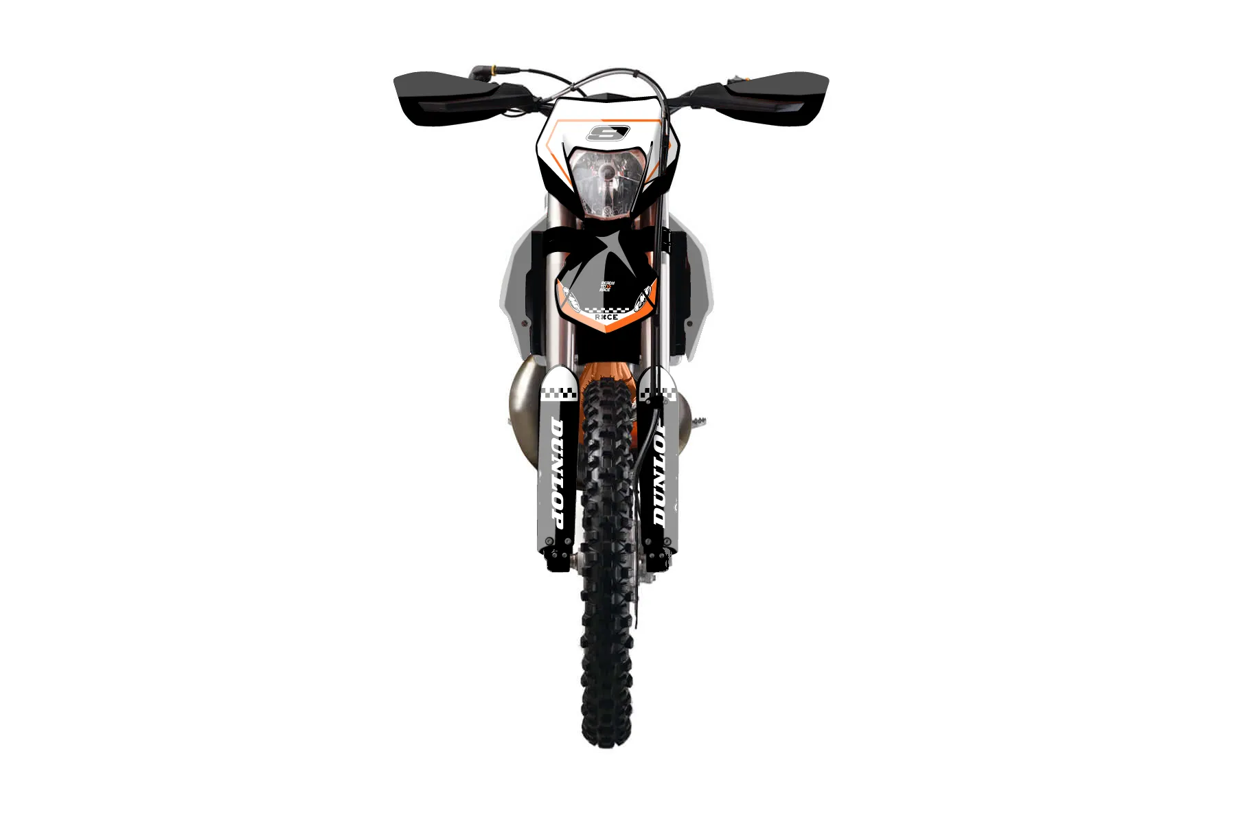 «Optical» — готовый комплект графики серии Staple для KTM Enduro Graphic Kit KTM EXC 150 2014. В комплекте: графика на бак и боковые облицовки, крылья (переднее и заднее), передний щиток, номерные таблички, защита вилки. Материал: ПВХ-винил 80 мкр с холодной ламинацией 300 мкр, общая толщина 380 мкр; покрытие глянцевое или матовое на выбор. Устойчив к UV-излучению, воде, бензину и мойке высокого давления. Клей акриловый на сольвентной основе — постоянный, для гибких пластиков. На простых поверхностях монтируется без нагрева; для сложных изгибов рекомендуем фен. Этот пресет можно заказать как есть или взять за основу в конструкторе: поменять цвета, добавить стартовый номер и свой бренд. Производство — 3–5 рабочих дней, доставка по России СДЭКом или Почтой, по СНГ — курьерскими службами.