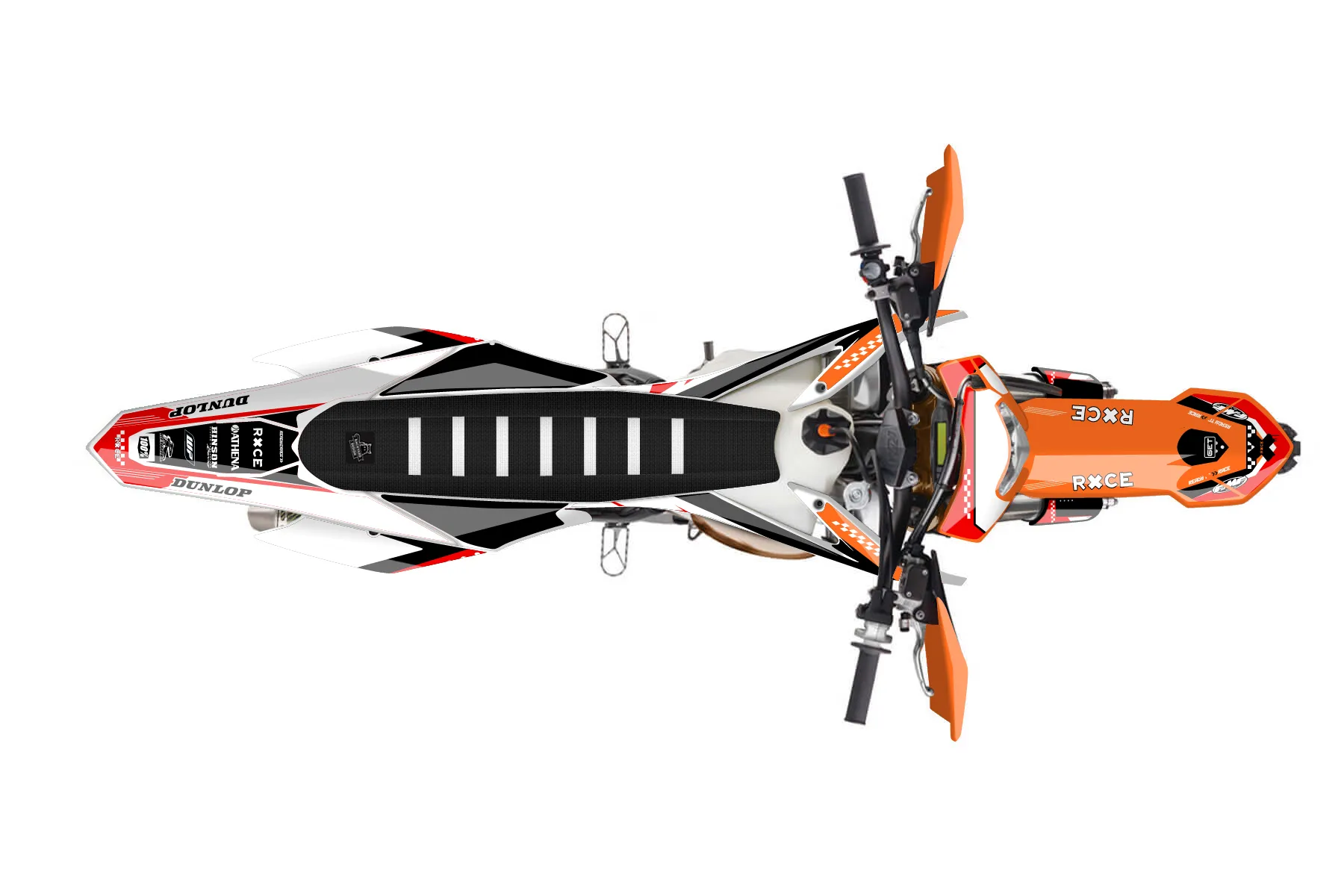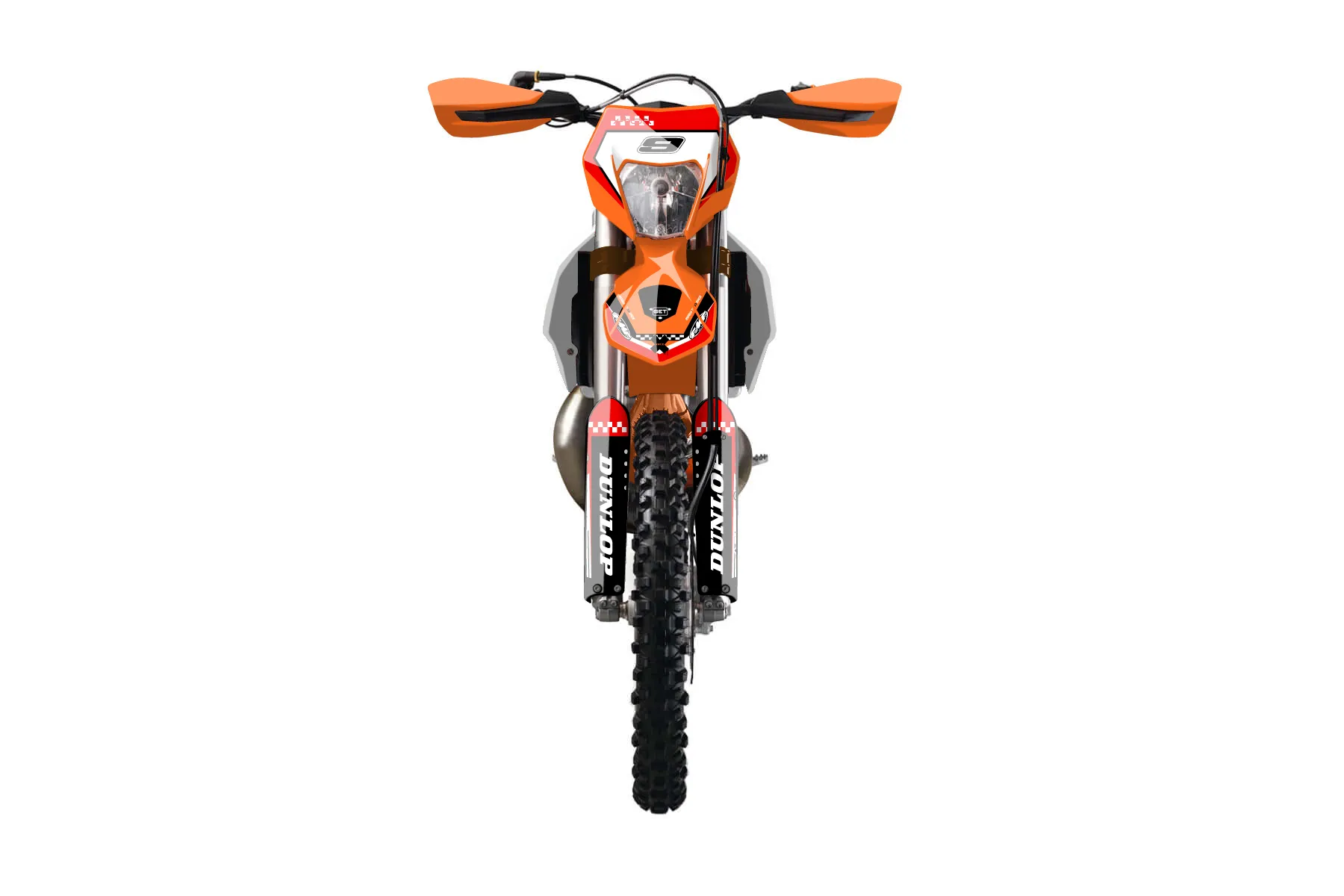«Spirit» — готовый комплект графики серии Staple для KTM Enduro Graphic Kit KTM EXC 150 2014. В комплекте: графика на бак и боковые облицовки, крылья (переднее и заднее), передний щиток, номерные таблички, защита вилки. Материал: ПВХ-винил 80 мкр с холодной ламинацией 300 мкр, общая толщина 380 мкр; покрытие глянцевое или матовое на выбор. Устойчив к UV-излучению, воде, бензину и мойке высокого давления. Клей акриловый на сольвентной основе — постоянный, для гибких пластиков. На простых поверхностях монтируется без нагрева; для сложных изгибов рекомендуем фен. Этот пресет можно заказать как есть или взять за основу в конструкторе: поменять цвета, добавить стартовый номер и свой бренд. Производство — 3–5 рабочих дней, доставка по России СДЭКом или Почтой, по СНГ — курьерскими службами.