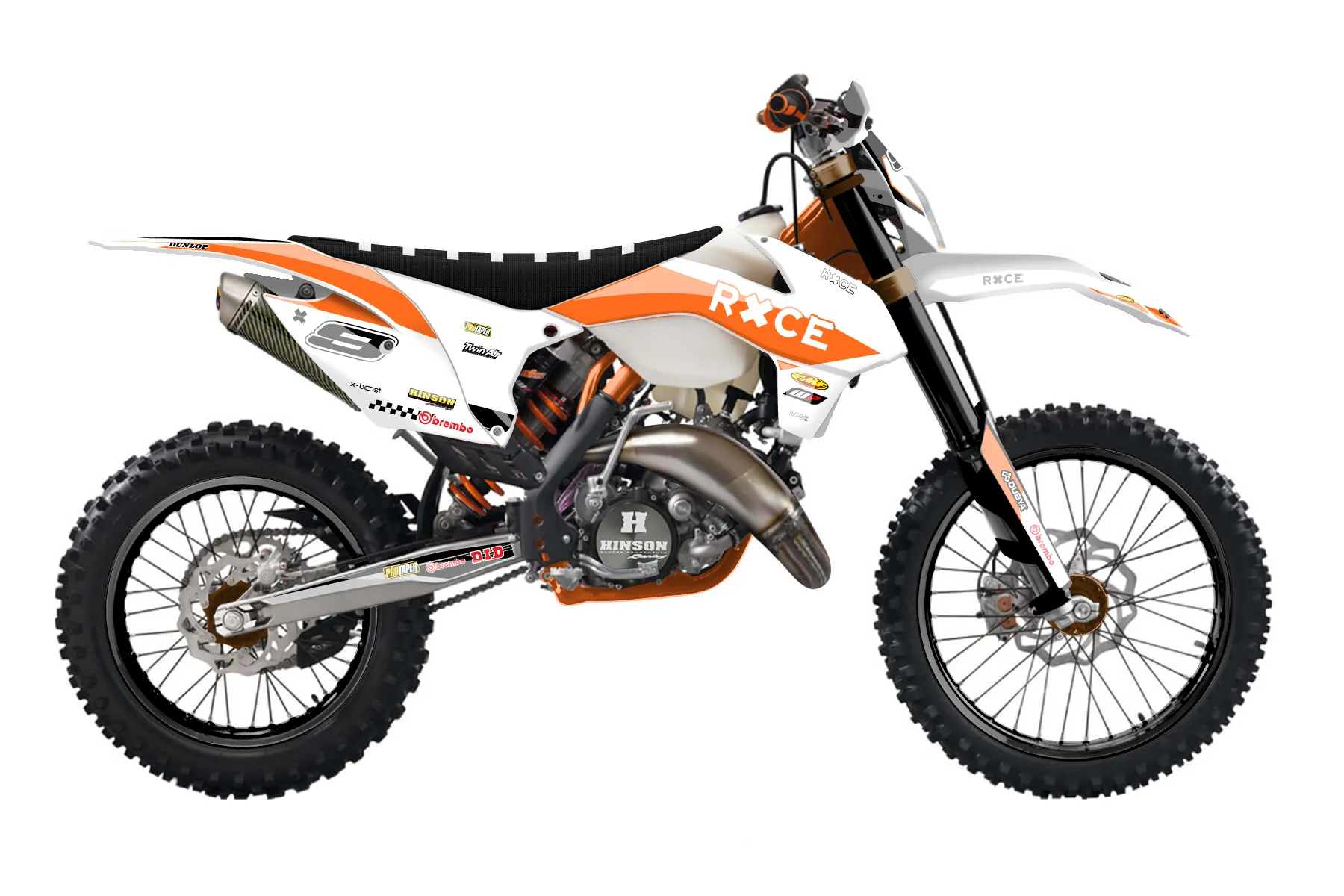 «Tilled» — готовый комплект графики серии Staple для KTM Enduro Graphic Kit KTM EXC 150 2014. В комплекте: графика на бак и боковые облицовки, крылья (переднее и заднее), передний щиток, номерные таблички, защита вилки. Материал: ПВХ-винил 80 мкр с холодной ламинацией 300 мкр, общая толщина 380 мкр; покрытие глянцевое или матовое на выбор. Устойчив к UV-излучению, воде, бензину и мойке высокого давления. Клей акриловый на сольвентной основе — постоянный, для гибких пластиков. На простых поверхностях монтируется без нагрева; для сложных изгибов рекомендуем фен. Этот пресет можно заказать как есть или взять за основу в конструкторе: поменять цвета, добавить стартовый номер и свой бренд. Производство — 3–5 рабочих дней, доставка по России СДЭКом или Почтой, по СНГ — курьерскими службами.
