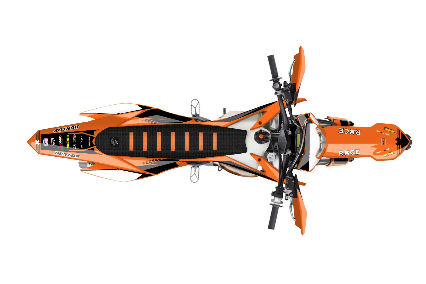 «Intact» — готовый комплект графики серии Untucked для KTM Enduro Graphic Kit KTM EXC 150 2014. В комплекте: графика на бак и боковые облицовки, крылья (переднее и заднее), передний щиток, номерные таблички, защита вилки. Материал: ПВХ-винил 80 мкр с холодной ламинацией 300 мкр, общая толщина 380 мкр; покрытие глянцевое или матовое на выбор. Устойчив к UV-излучению, воде, бензину и мойке высокого давления. Клей акриловый на сольвентной основе — постоянный, для гибких пластиков. На простых поверхностях монтируется без нагрева; для сложных изгибов рекомендуем фен. Этот пресет можно заказать как есть или взять за основу в конструкторе: поменять цвета, добавить стартовый номер и свой бренд. Производство — 3–5 рабочих дней, доставка по России СДЭКом или Почтой, по СНГ — курьерскими службами.