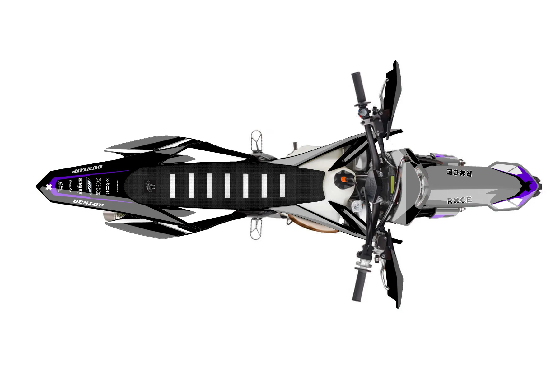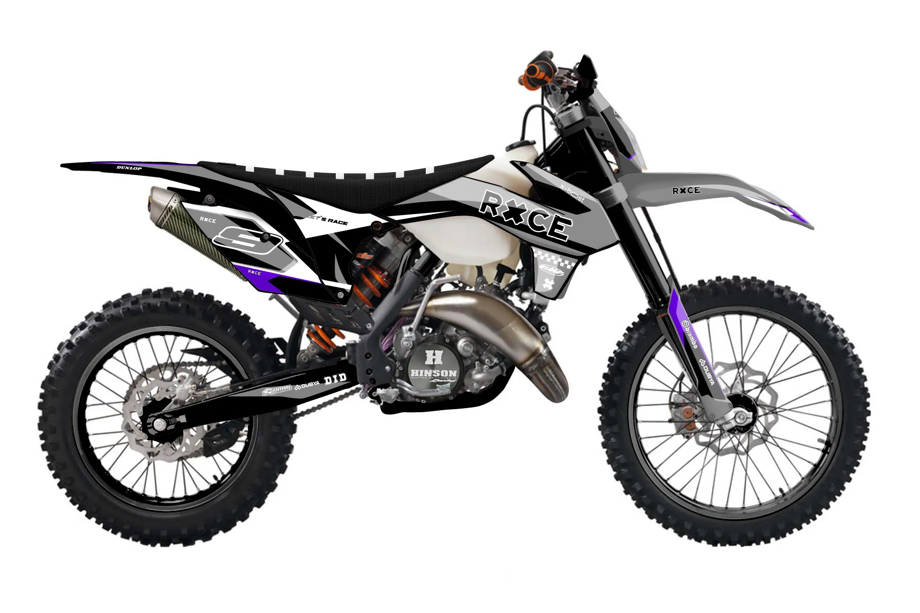 «Cyber Pirate» — готовый комплект графики серии Flow для KTM Enduro Graphic Kit KTM EXC 150 2016. В комплекте: графика на бак и боковые облицовки, крылья (переднее и заднее), передний щиток, номерные таблички, защита вилки. Материал: ПВХ-винил 80 мкр с холодной ламинацией 300 мкр, общая толщина 380 мкр; покрытие глянцевое или матовое на выбор. Устойчив к UV-излучению, воде, бензину и мойке высокого давления. Клей акриловый на сольвентной основе — постоянный, для гибких пластиков. На простых поверхностях монтируется без нагрева; для сложных изгибов рекомендуем фен. Этот пресет можно заказать как есть или взять за основу в конструкторе: поменять цвета, добавить стартовый номер и свой бренд. Производство — 3–5 рабочих дней, доставка по России СДЭКом или Почтой, по СНГ — курьерскими службами.