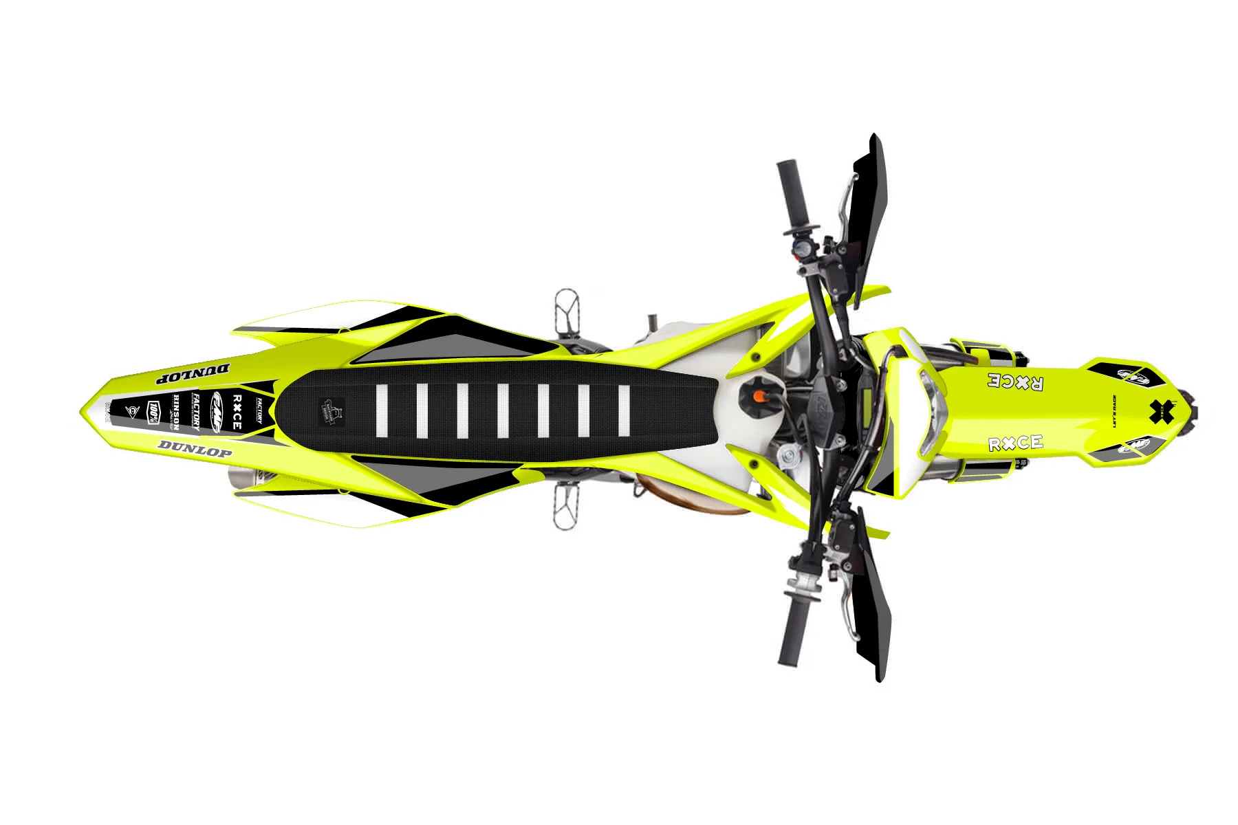«Bright Neon» — готовый комплект графики серии Maverick для KTM Enduro Graphic Kit KTM EXC 150 2016. В комплекте: графика на бак и боковые облицовки, крылья (переднее и заднее), передний щиток, номерные таблички, защита вилки. Материал: ПВХ-винил 80 мкр с холодной ламинацией 300 мкр, общая толщина 380 мкр; покрытие глянцевое или матовое на выбор. Устойчив к UV-излучению, воде, бензину и мойке высокого давления. Клей акриловый на сольвентной основе — постоянный, для гибких пластиков. На простых поверхностях монтируется без нагрева; для сложных изгибов рекомендуем фен. Этот пресет можно заказать как есть или взять за основу в конструкторе: поменять цвета, добавить стартовый номер и свой бренд. Производство — 3–5 рабочих дней, доставка по России СДЭКом или Почтой, по СНГ — курьерскими службами.