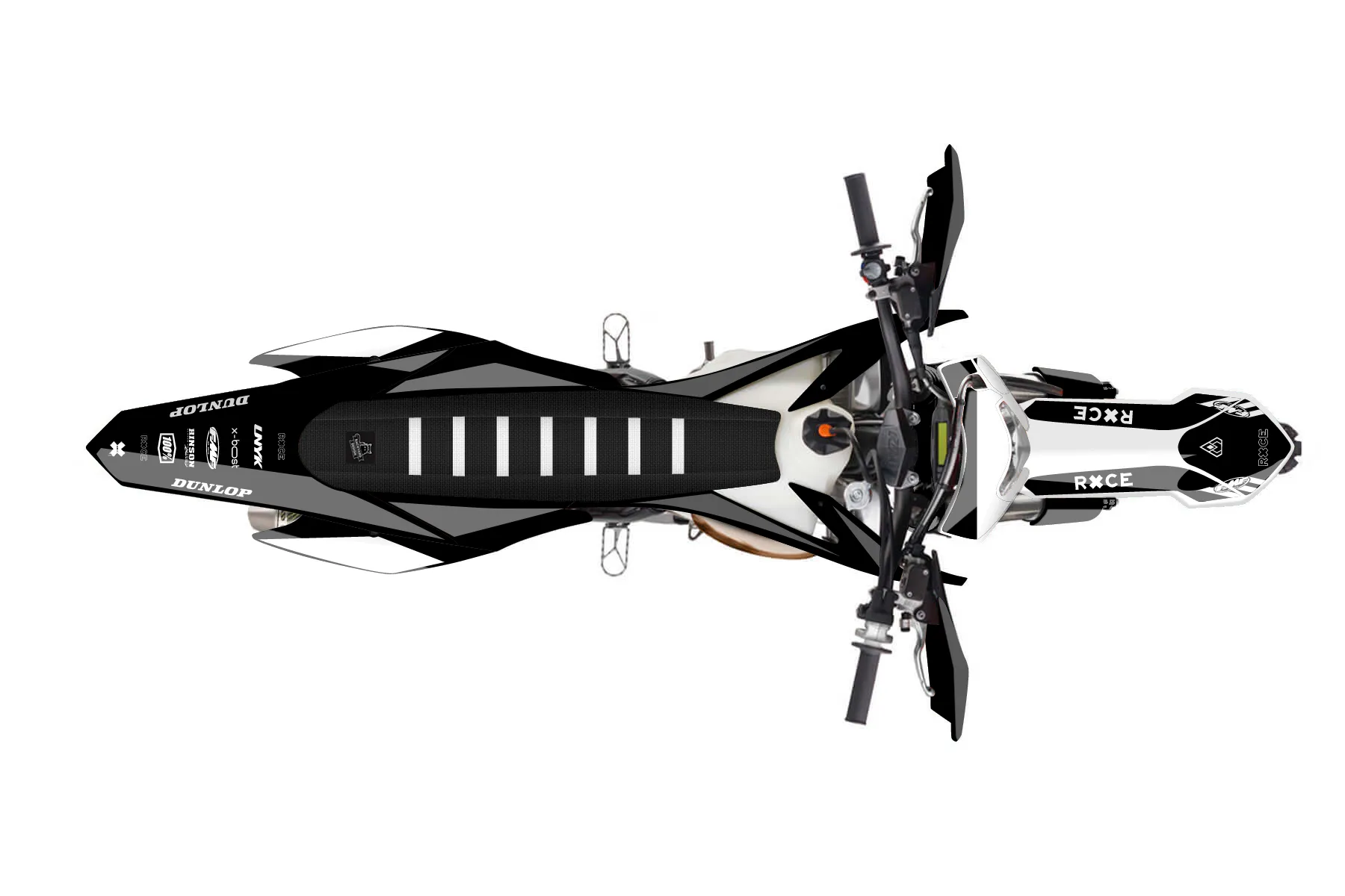 «DeCore» — готовый комплект графики серии Maverick для KTM Enduro Graphic Kit KTM EXC 150 2016. В комплекте: графика на бак и боковые облицовки, крылья (переднее и заднее), передний щиток, номерные таблички, защита вилки. Материал: ПВХ-винил 80 мкр с холодной ламинацией 300 мкр, общая толщина 380 мкр; покрытие глянцевое или матовое на выбор. Устойчив к UV-излучению, воде, бензину и мойке высокого давления. Клей акриловый на сольвентной основе — постоянный, для гибких пластиков. На простых поверхностях монтируется без нагрева; для сложных изгибов рекомендуем фен. Этот пресет можно заказать как есть или взять за основу в конструкторе: поменять цвета, добавить стартовый номер и свой бренд. Производство — 3–5 рабочих дней, доставка по России СДЭКом или Почтой, по СНГ — курьерскими службами.