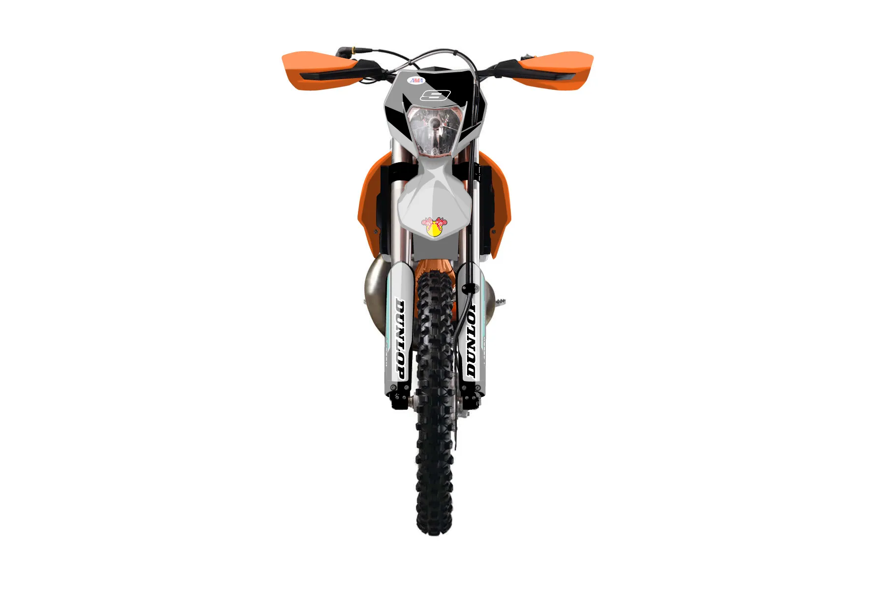 «Fuse» — готовый комплект графики серии Maverick для KTM Enduro Graphic Kit KTM EXC 150 2016. В комплекте: графика на бак и боковые облицовки, крылья (переднее и заднее), передний щиток, номерные таблички, защита вилки. Материал: ПВХ-винил 80 мкр с холодной ламинацией 300 мкр, общая толщина 380 мкр; покрытие глянцевое или матовое на выбор. Устойчив к UV-излучению, воде, бензину и мойке высокого давления. Клей акриловый на сольвентной основе — постоянный, для гибких пластиков. На простых поверхностях монтируется без нагрева; для сложных изгибов рекомендуем фен. Этот пресет можно заказать как есть или взять за основу в конструкторе: поменять цвета, добавить стартовый номер и свой бренд. Производство — 3–5 рабочих дней, доставка по России СДЭКом или Почтой, по СНГ — курьерскими службами.