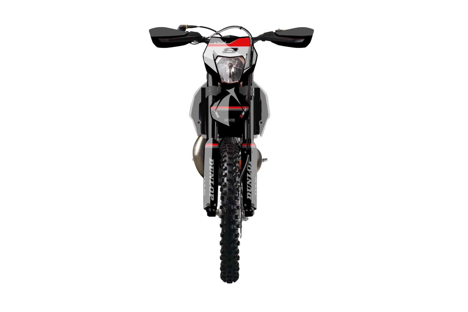 «Rise» — готовый комплект графики серии Maverick для KTM Enduro Graphic Kit KTM EXC 150 2016. В комплекте: графика на бак и боковые облицовки, крылья (переднее и заднее), передний щиток, номерные таблички, защита вилки. Материал: ПВХ-винил 80 мкр с холодной ламинацией 300 мкр, общая толщина 380 мкр; покрытие глянцевое или матовое на выбор. Устойчив к UV-излучению, воде, бензину и мойке высокого давления. Клей акриловый на сольвентной основе — постоянный, для гибких пластиков. На простых поверхностях монтируется без нагрева; для сложных изгибов рекомендуем фен. Этот пресет можно заказать как есть или взять за основу в конструкторе: поменять цвета, добавить стартовый номер и свой бренд. Производство — 3–5 рабочих дней, доставка по России СДЭКом или Почтой, по СНГ — курьерскими службами.
