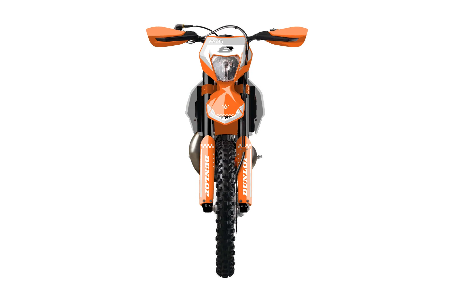 «Myth» — готовый комплект графики серии Staple для KTM Enduro Graphic Kit KTM EXC 150 2016. В комплекте: графика на бак и боковые облицовки, крылья (переднее и заднее), передний щиток, номерные таблички, защита вилки. Материал: ПВХ-винил 80 мкр с холодной ламинацией 300 мкр, общая толщина 380 мкр; покрытие глянцевое или матовое на выбор. Устойчив к UV-излучению, воде, бензину и мойке высокого давления. Клей акриловый на сольвентной основе — постоянный, для гибких пластиков. На простых поверхностях монтируется без нагрева; для сложных изгибов рекомендуем фен. Этот пресет можно заказать как есть или взять за основу в конструкторе: поменять цвета, добавить стартовый номер и свой бренд. Производство — 3–5 рабочих дней, доставка по России СДЭКом или Почтой, по СНГ — курьерскими службами.
