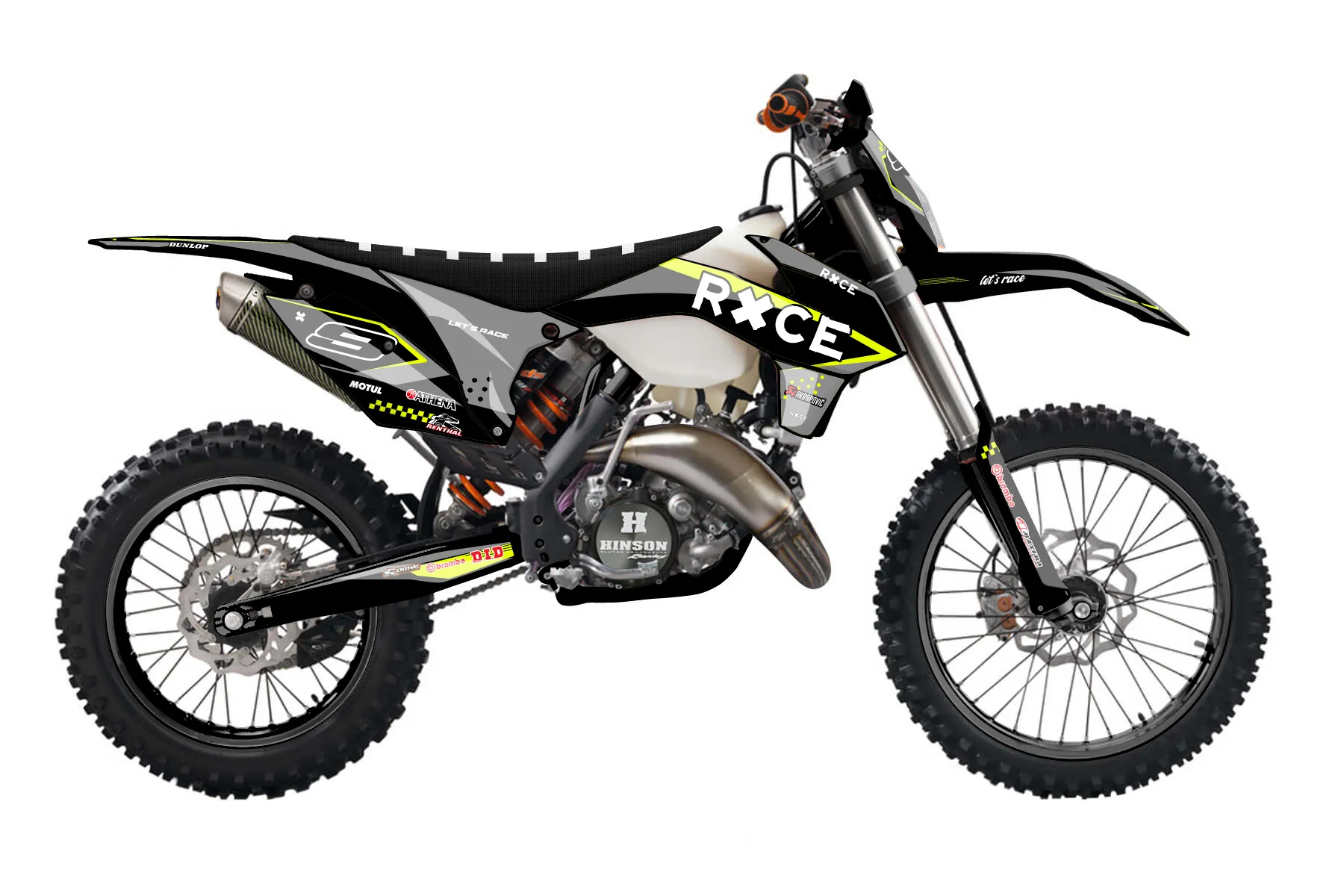 «Refuse Neon» — готовый комплект графики серии Staple для KTM Enduro Graphic Kit KTM EXC 150 2016. В комплекте: графика на бак и боковые облицовки, крылья (переднее и заднее), передний щиток, номерные таблички, защита вилки. Материал: ПВХ-винил 80 мкр с холодной ламинацией 300 мкр, общая толщина 380 мкр; покрытие глянцевое или матовое на выбор. Устойчив к UV-излучению, воде, бензину и мойке высокого давления. Клей акриловый на сольвентной основе — постоянный, для гибких пластиков. На простых поверхностях монтируется без нагрева; для сложных изгибов рекомендуем фен. Этот пресет можно заказать как есть или взять за основу в конструкторе: поменять цвета, добавить стартовый номер и свой бренд. Производство — 3–5 рабочих дней, доставка по России СДЭКом или Почтой, по СНГ — курьерскими службами.
