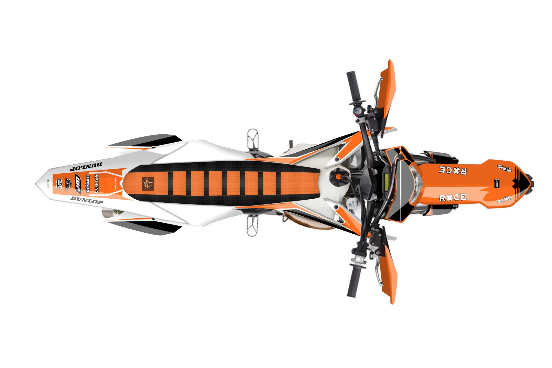 «Crowning» — готовый комплект графики серии Untucked для KTM Enduro Graphic Kit KTM EXC 150 2016. В комплекте: графика на бак и боковые облицовки, крылья (переднее и заднее), передний щиток, номерные таблички, защита вилки. Материал: ПВХ-винил 80 мкр с холодной ламинацией 300 мкр, общая толщина 380 мкр; покрытие глянцевое или матовое на выбор. Устойчив к UV-излучению, воде, бензину и мойке высокого давления. Клей акриловый на сольвентной основе — постоянный, для гибких пластиков. На простых поверхностях монтируется без нагрева; для сложных изгибов рекомендуем фен. Этот пресет можно заказать как есть или взять за основу в конструкторе: поменять цвета, добавить стартовый номер и свой бренд. Производство — 3–5 рабочих дней, доставка по России СДЭКом или Почтой, по СНГ — курьерскими службами.