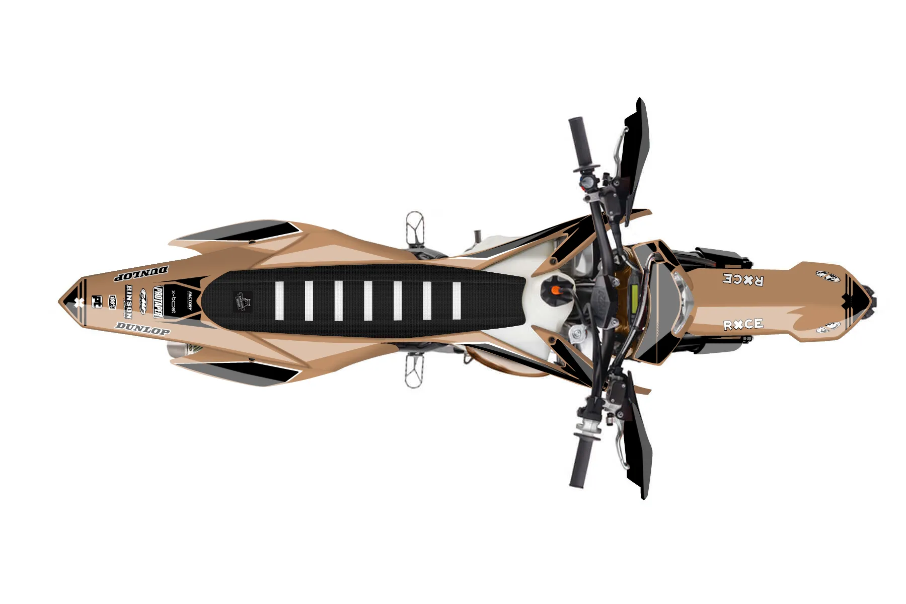 «Entire» — готовый комплект графики серии Untucked для KTM Enduro Graphic Kit KTM EXC 150 2016. В комплекте: графика на бак и боковые облицовки, крылья (переднее и заднее), передний щиток, номерные таблички, защита вилки. Материал: ПВХ-винил 80 мкр с холодной ламинацией 300 мкр, общая толщина 380 мкр; покрытие глянцевое или матовое на выбор. Устойчив к UV-излучению, воде, бензину и мойке высокого давления. Клей акриловый на сольвентной основе — постоянный, для гибких пластиков. На простых поверхностях монтируется без нагрева; для сложных изгибов рекомендуем фен. Этот пресет можно заказать как есть или взять за основу в конструкторе: поменять цвета, добавить стартовый номер и свой бренд. Производство — 3–5 рабочих дней, доставка по России СДЭКом или Почтой, по СНГ — курьерскими службами.