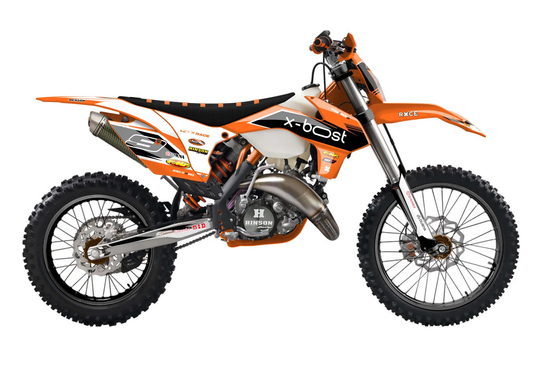 «Proven» — готовый комплект графики серии Untucked для KTM Enduro Graphic Kit KTM EXC 150 2016. В комплекте: графика на бак и боковые облицовки, крылья (переднее и заднее), передний щиток, номерные таблички, защита вилки. Материал: ПВХ-винил 80 мкр с холодной ламинацией 300 мкр, общая толщина 380 мкр; покрытие глянцевое или матовое на выбор. Устойчив к UV-излучению, воде, бензину и мойке высокого давления. Клей акриловый на сольвентной основе — постоянный, для гибких пластиков. На простых поверхностях монтируется без нагрева; для сложных изгибов рекомендуем фен. Этот пресет можно заказать как есть или взять за основу в конструкторе: поменять цвета, добавить стартовый номер и свой бренд. Производство — 3–5 рабочих дней, доставка по России СДЭКом или Почтой, по СНГ — курьерскими службами.
