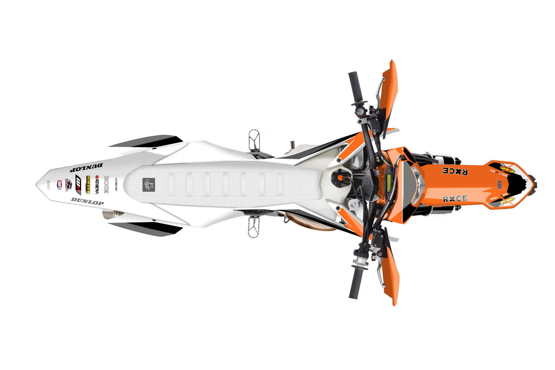«Superb» — готовый комплект графики серии Untucked для KTM Enduro Graphic Kit KTM EXC 150 2016. В комплекте: графика на бак и боковые облицовки, крылья (переднее и заднее), передний щиток, номерные таблички, защита вилки. Материал: ПВХ-винил 80 мкр с холодной ламинацией 300 мкр, общая толщина 380 мкр; покрытие глянцевое или матовое на выбор. Устойчив к UV-излучению, воде, бензину и мойке высокого давления. Клей акриловый на сольвентной основе — постоянный, для гибких пластиков. На простых поверхностях монтируется без нагрева; для сложных изгибов рекомендуем фен. Этот пресет можно заказать как есть или взять за основу в конструкторе: поменять цвета, добавить стартовый номер и свой бренд. Производство — 3–5 рабочих дней, доставка по России СДЭКом или Почтой, по СНГ — курьерскими службами.