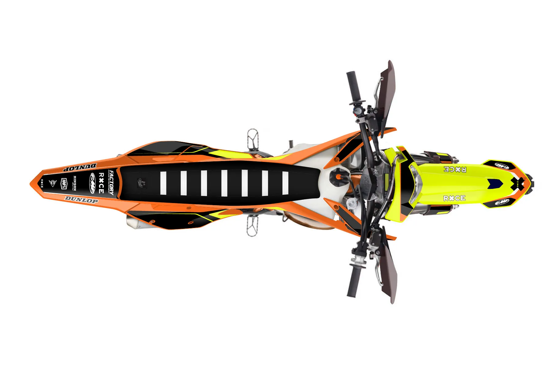 «Fluorescent» — готовый комплект графики серии Flow для KTM Enduro Graphic Kit KTM EXC 150 2017. В комплекте: графика на бак и боковые облицовки, крылья (переднее и заднее), передний щиток, номерные таблички, защита вилки. Материал: ПВХ-винил 80 мкр с холодной ламинацией 300 мкр, общая толщина 380 мкр; покрытие глянцевое или матовое на выбор. Устойчив к UV-излучению, воде, бензину и мойке высокого давления. Клей акриловый на сольвентной основе — постоянный, для гибких пластиков. На простых поверхностях монтируется без нагрева; для сложных изгибов рекомендуем фен. Этот пресет можно заказать как есть или взять за основу в конструкторе: поменять цвета, добавить стартовый номер и свой бренд. Производство — 3–5 рабочих дней, доставка по России СДЭКом или Почтой, по СНГ — курьерскими службами.