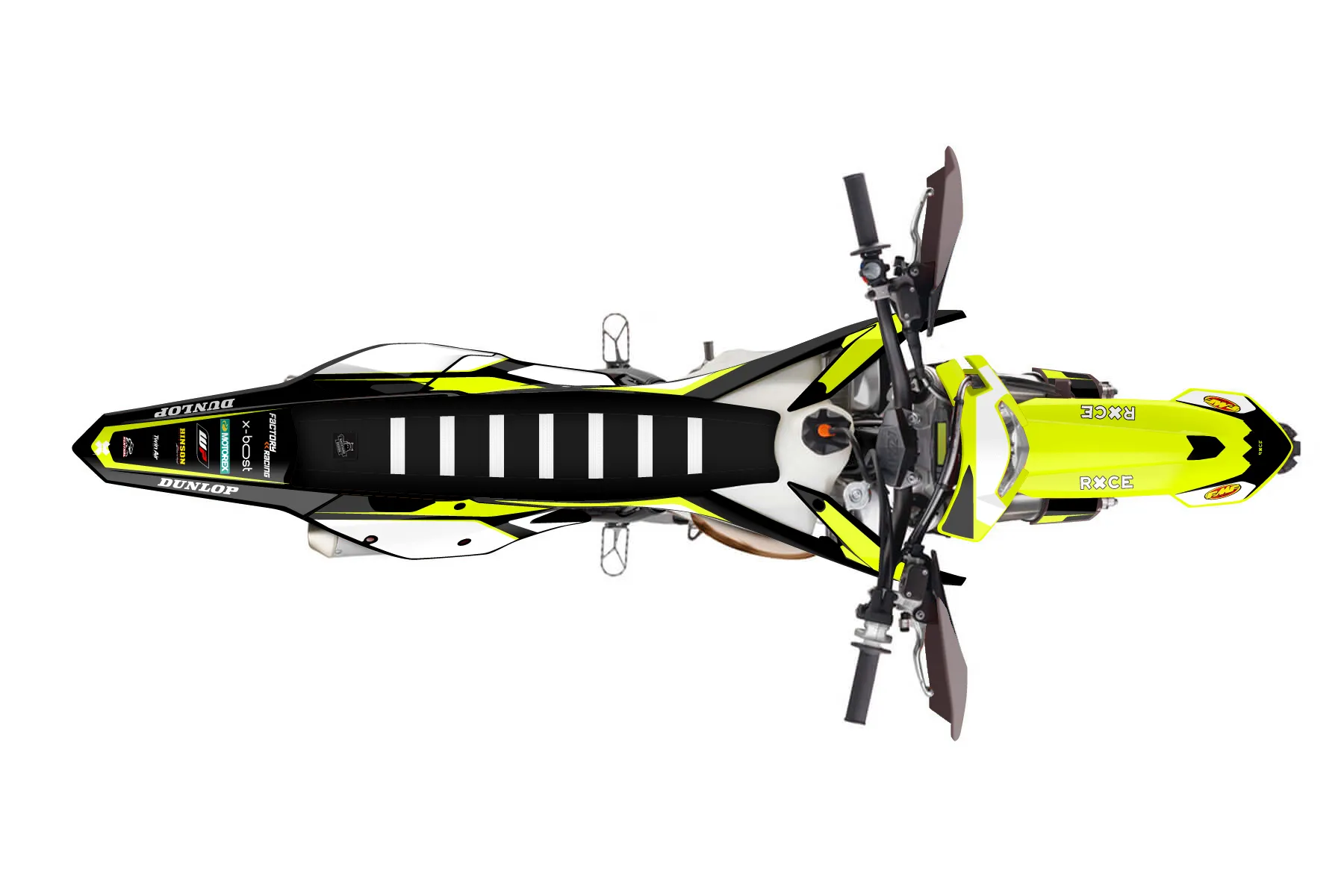 «Lucent Neon» — готовый комплект графики серии Flow для KTM Enduro Graphic Kit KTM EXC 150 2017. В комплекте: графика на бак и боковые облицовки, крылья (переднее и заднее), передний щиток, номерные таблички, защита вилки. Материал: ПВХ-винил 80 мкр с холодной ламинацией 300 мкр, общая толщина 380 мкр; покрытие глянцевое или матовое на выбор. Устойчив к UV-излучению, воде, бензину и мойке высокого давления. Клей акриловый на сольвентной основе — постоянный, для гибких пластиков. На простых поверхностях монтируется без нагрева; для сложных изгибов рекомендуем фен. Этот пресет можно заказать как есть или взять за основу в конструкторе: поменять цвета, добавить стартовый номер и свой бренд. Производство — 3–5 рабочих дней, доставка по России СДЭКом или Почтой, по СНГ — курьерскими службами.